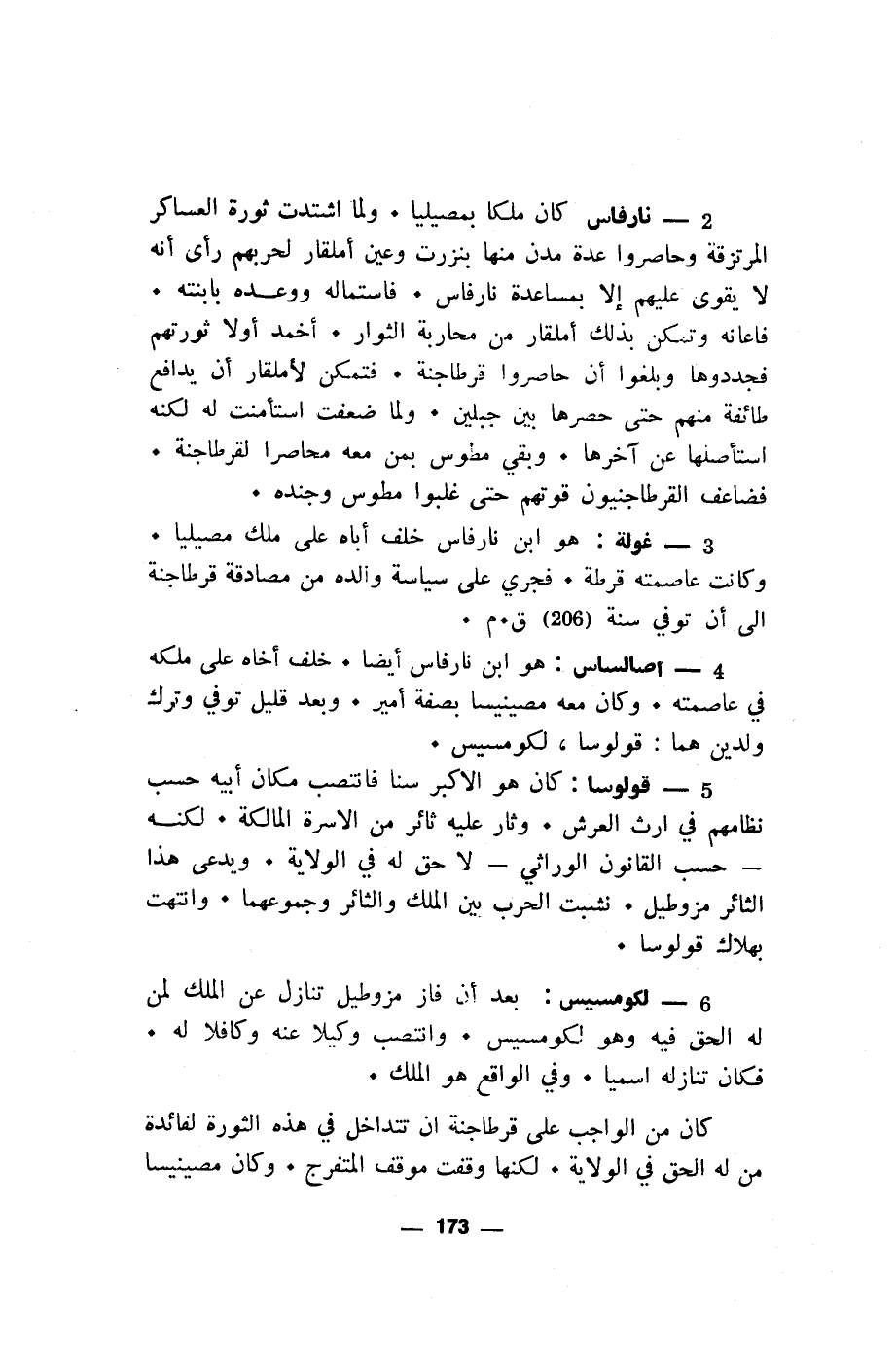 2 - نارفاس كان ملكا بمصيليا. ولما اشتدت ثورة العساكر المرتزقة وحاصروا عدة مدت منها بنزرت وعين أملقار لحربهم رأى أنه لا يقوى عليهم إلا بمساعدة نارفاس. فاستماله ووعده بابنته. فاعانه وتمكن بذلك أملقار من محاربة الثوار. أخمد أولا ثورتهم فجددوها وبلغوا أن حاصروا قرطاجنة. فتمكن لأملقار أن يدافع طائفة منهم حتى حصرها بين جبلين. ولما ضعفت استأمنت له لكنه استأصلها عن آخرها. وبقي مطوس بمن معه محاصرا لقرطاجنة. فضاعف القرطاجنيون قوتهم حتى غلبوا مطوس وجنده.