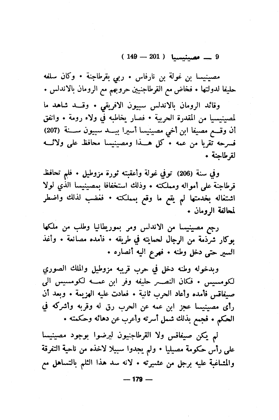 وقائد الرومان بالاندلس سبيون الأفريقي. وقد شاهد ما لمصينيسيا من القدرة الحربية. فصار يخاطبه في ولاء رومة. واتفق أن وقع مصيفا ابن أخي مصينيسا أسيرا بيد سبيون سنة (207) فسرحه تقربا من عمه. كل هذا ومصينيسا محافظ على ولائه لقرطاجنة.