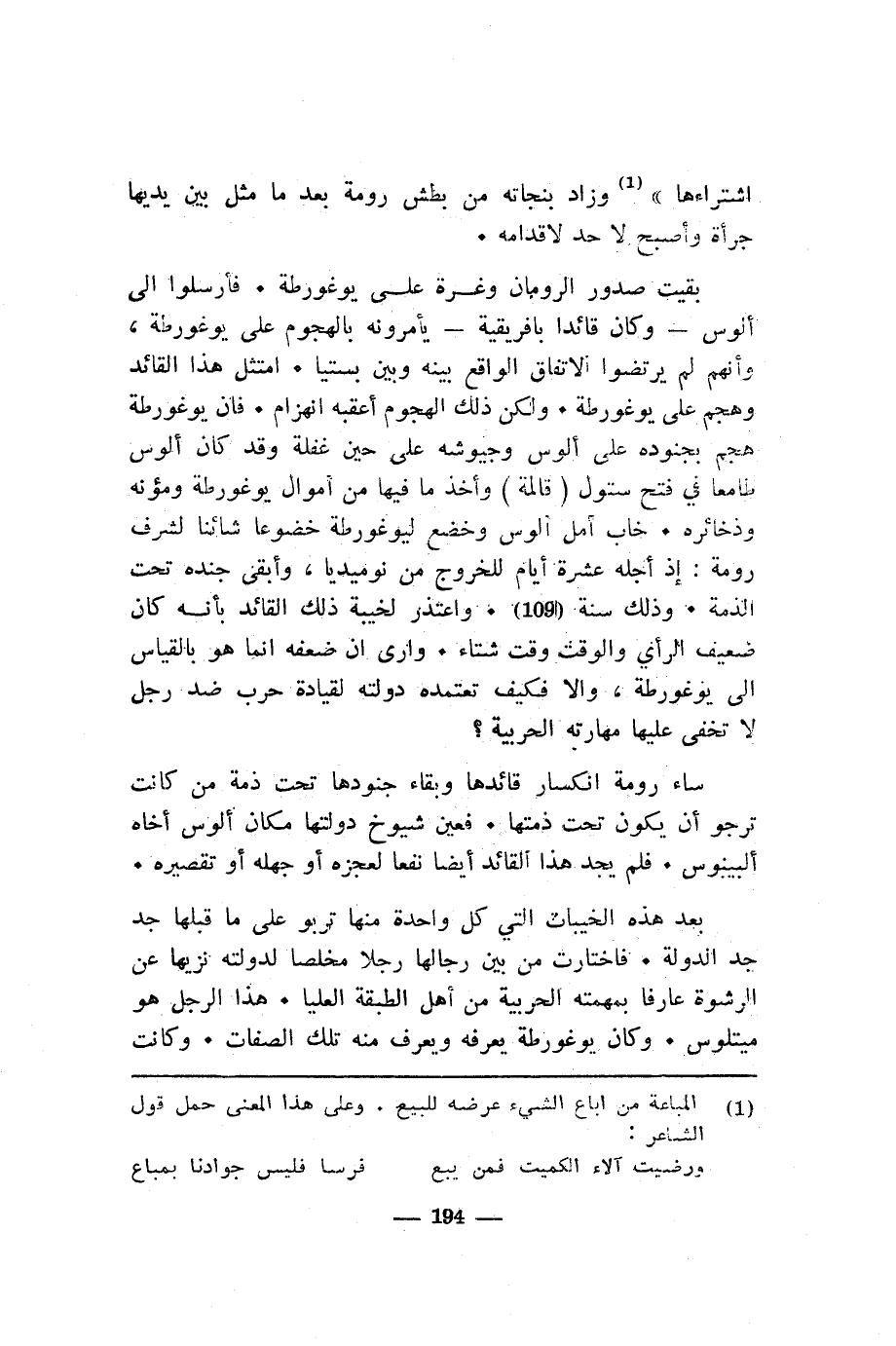 اشتراها " (¬1) وزاد بنجاته من بطش رومة بعد ما مثل بين يديها جرأة وأصبح لا حد لاقدامه.