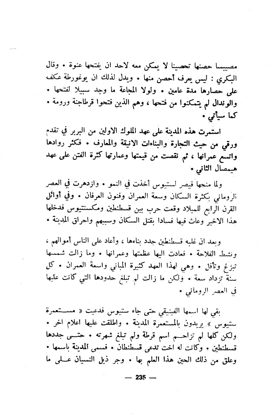 بقي لها اسمها الفينيقي حتى جاء ستيوس فدعيت "مستعمرة ستيوس" يريدون بالمستعمرة المدينة. واطلقت عليها اعلام اخر. ولكن كلها لم تزاحم اسم قرطة ولم تبلغ شهرته. حتى جددها قسطنطين. وكانت له اخت تدعى قسسطنطان. فسمى المدينة باسمهاه وعلق من ذلك الحين هذا العلم بها. وجر ذيل النسيان على ما