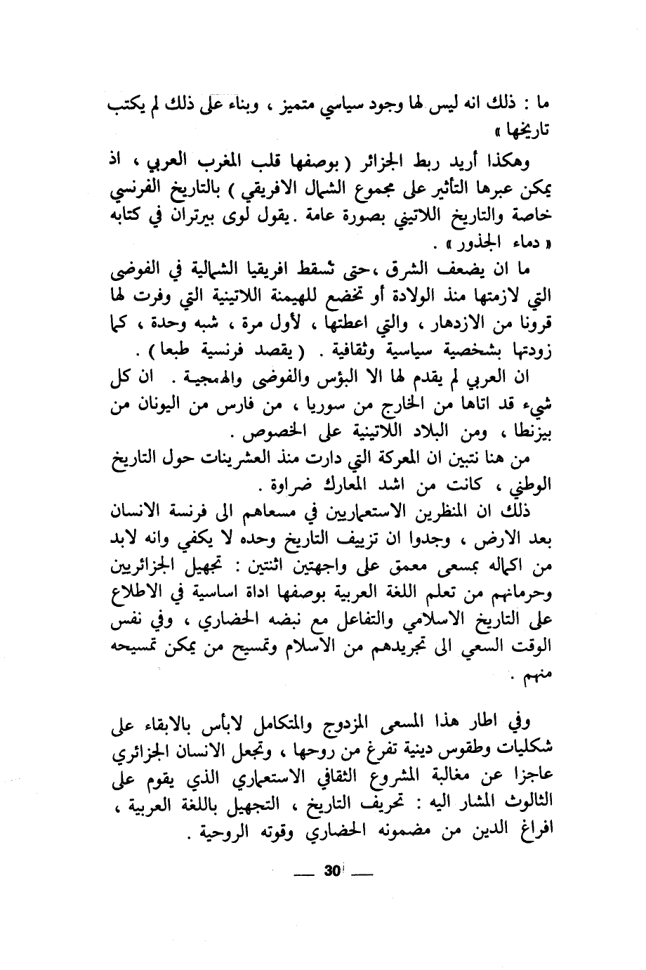 من هنا نتبين ان المعركة التي دارت منذ العشرينات حول التاريخ الوطني، كانت من اشد المعارك ضراوة.
