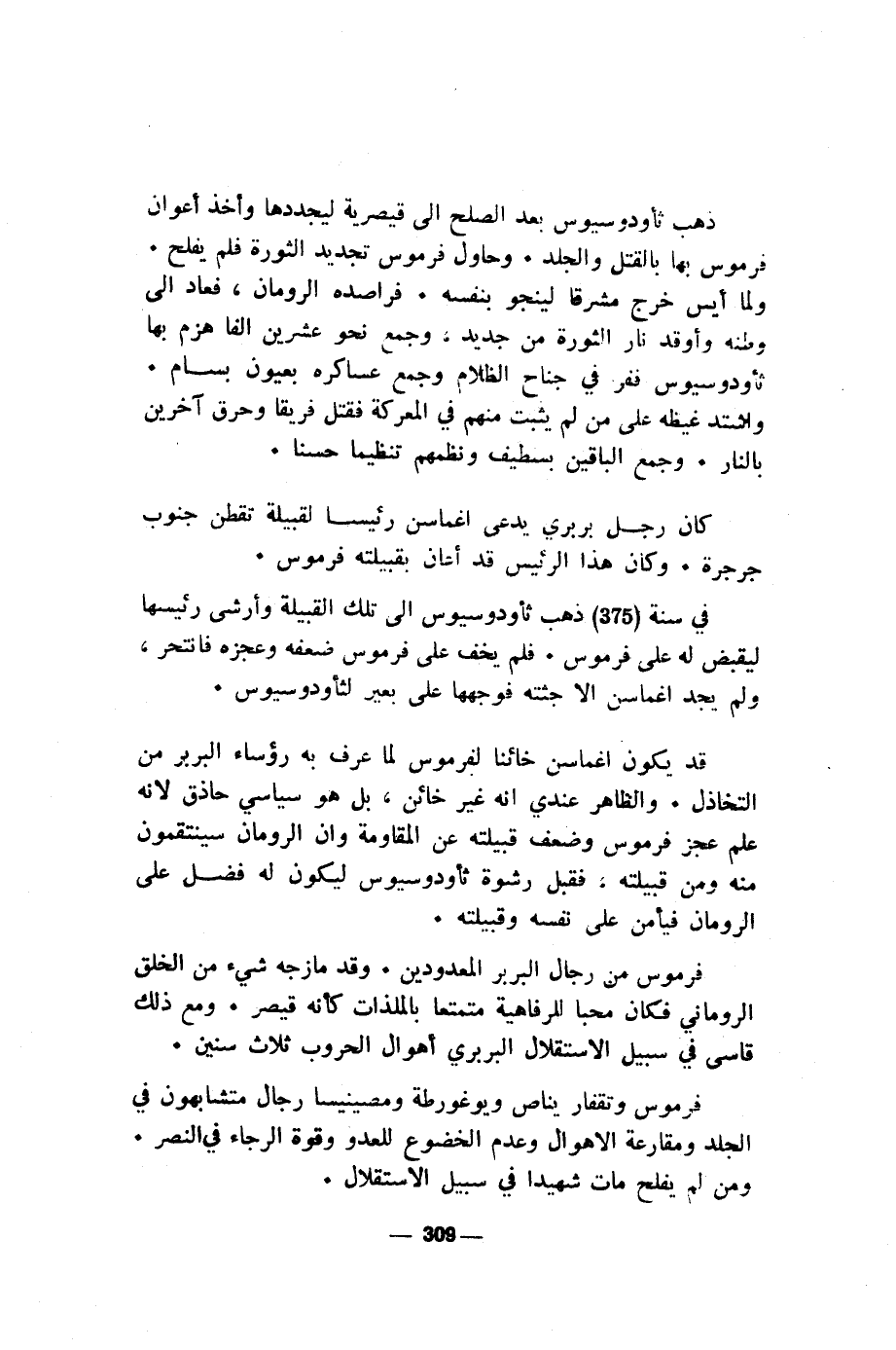 فرموس وتقفاريناص ويوغورطة ومصينيسا رجال متشابهون في الجلد ومقارعة الاهوال وعدم الخضوع للعدو وقوة الرجاء في النصر. ومن لم يفلح مات شهيدا في سبيل الاستقلال.