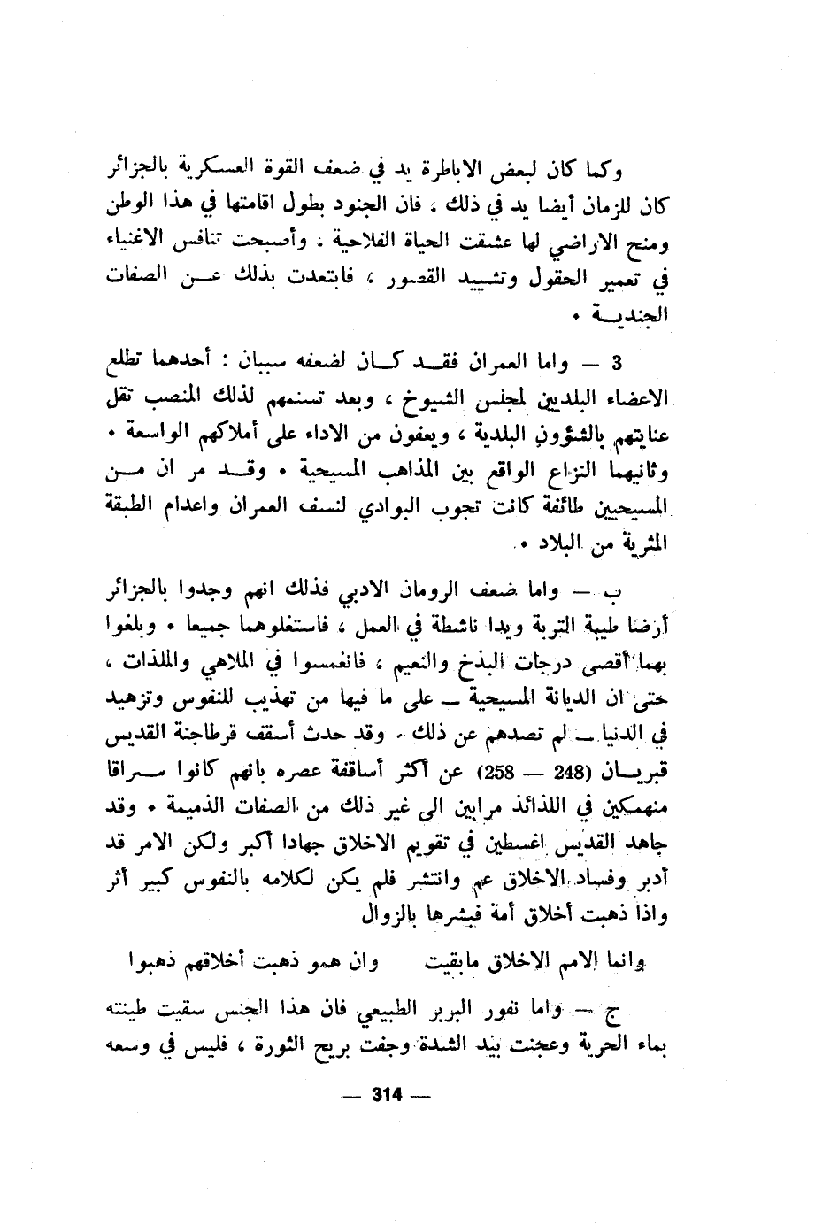 ج- واما نفور البربر الطبيعي فان هذا الجنس سقيت طينته بماء الحرية وعجنت بيد الشدة وجفت بريح الثورة، فليس في وسعه