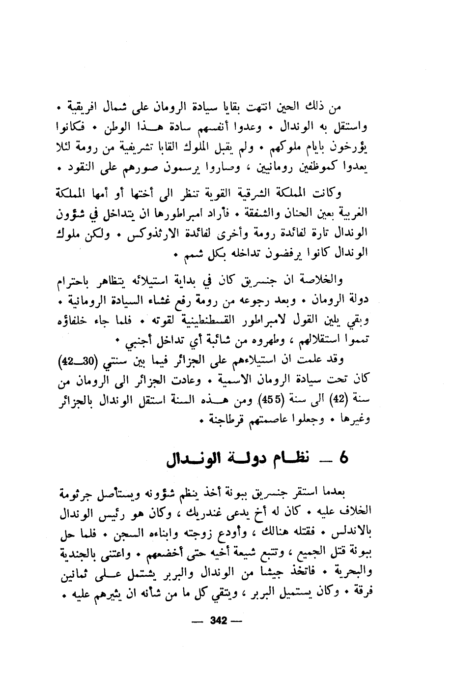وقد علمت ان استيلاءهم على الجزائر فيما بين سنتي (30 - 42) كان تحت سيادة الرومان الاسمية. وعادت الجزائر الى الرومان من سنة (42) الى سنة (455) ومن هذه السنة استقل الوندال بالجزائر وغيرها. وجعلوا عاصمتهم قرطاجنة.