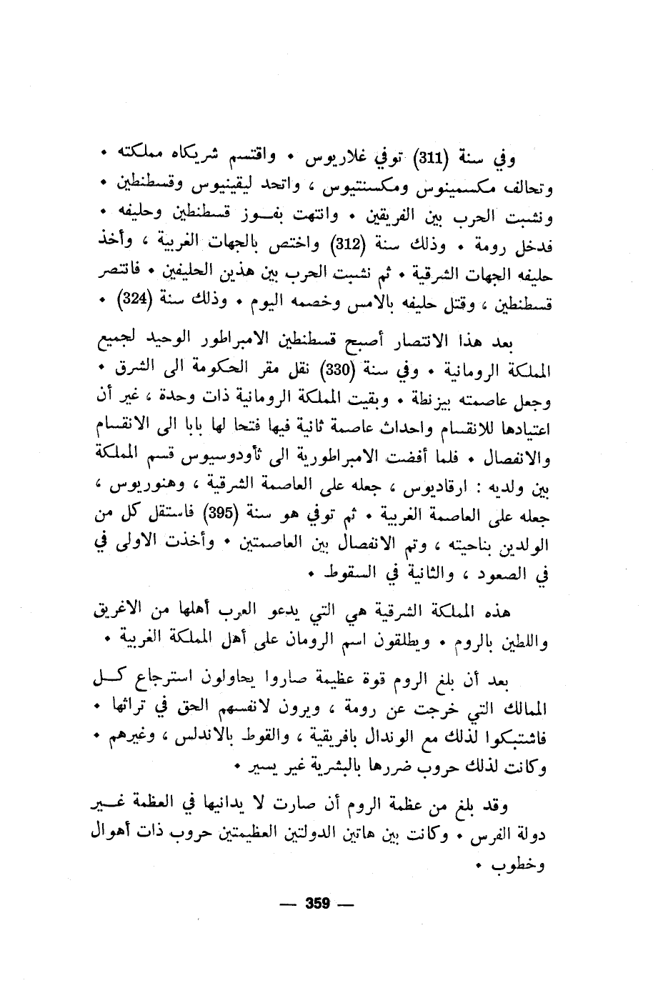 هذه المملكة الشرقية هي التي يدعو العرب أهلها من الاغريق واللطين بالروم. ويطلقون اسم الرومان على أهل المملكة الغربية.