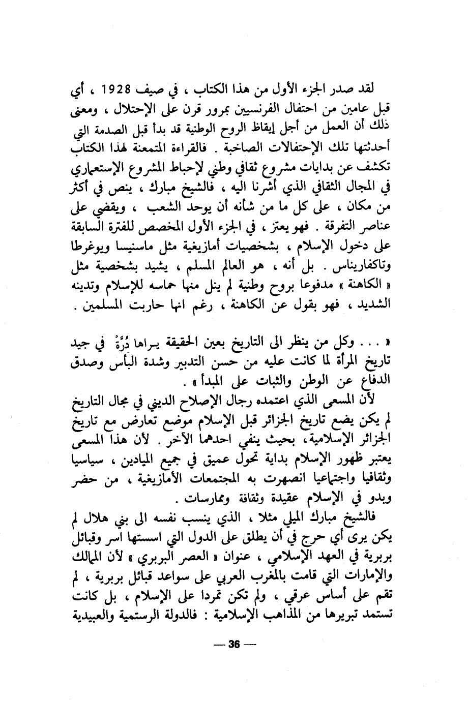 لأن المسعى الذي اعتمده رجال الإصلاح الديني في مجال التاريخ لم يكن يضع تاريخ الجزائر قبل الإسلام موضع تعارض مع تاريخ الجزائر الإسلامية، بحيث ينفي احدهما الآخر. لأن هذا المسعى يعتبر ظهور الإسلام بداية تحول عميق في جميع الميادين، سياسيا وثقافيا واجتماعيا انصهرت به المجتمعات الأمازيغية، من حضر وبدو في الإسلام عقيدة وثقافة وممارسات.
