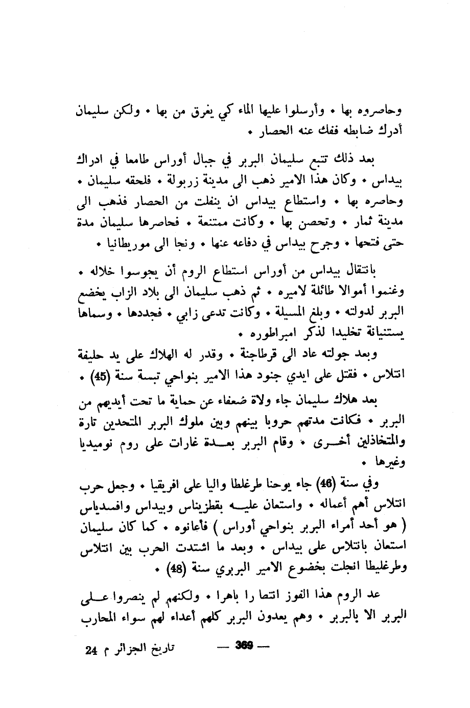 بانتقال بيداس من أوراس استطاع الروم أن يجوسوا خلاله. وغنموا أموالا طائلة لاميره. ثم ذهب سليمان الى بلاد الزاب يخضع البربر لدولته. وبلغ المسيلة. وكانت تدعى زابي. فجددها. وسماها يستنيانة تخليدا لذكر امبراطوره.