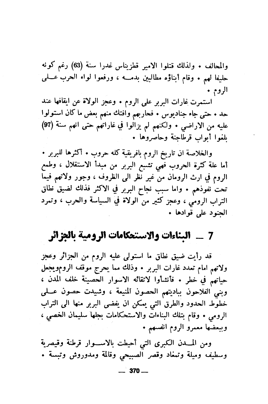 والخلاصة ان تاريخ الروم. بأفريقية كله حروب. أكثرها للبربر.