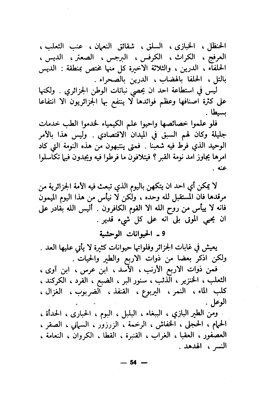 ليس في استطاعة احد ان يحصي نباتات الوطن الجزائري. ولكنها على كثرة اصنافها وعظم فوائدها لا ينتفع بها الجزائريون الا انتفاعا بسيطا.