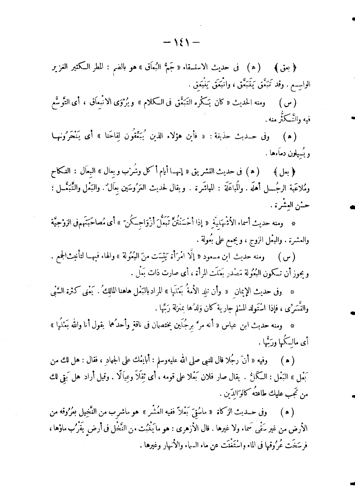 وَمِنْهُ حَدِيثُ ابْنِ عُمَرَ رَضِيَ اللَّهُ عَنْهُمَا «أَنَّهُ أَصَابَهُ قُطع أَوْ بُهْر» وَقَدْ تَكَرَّرَ فِي الْحَدِيثِ.