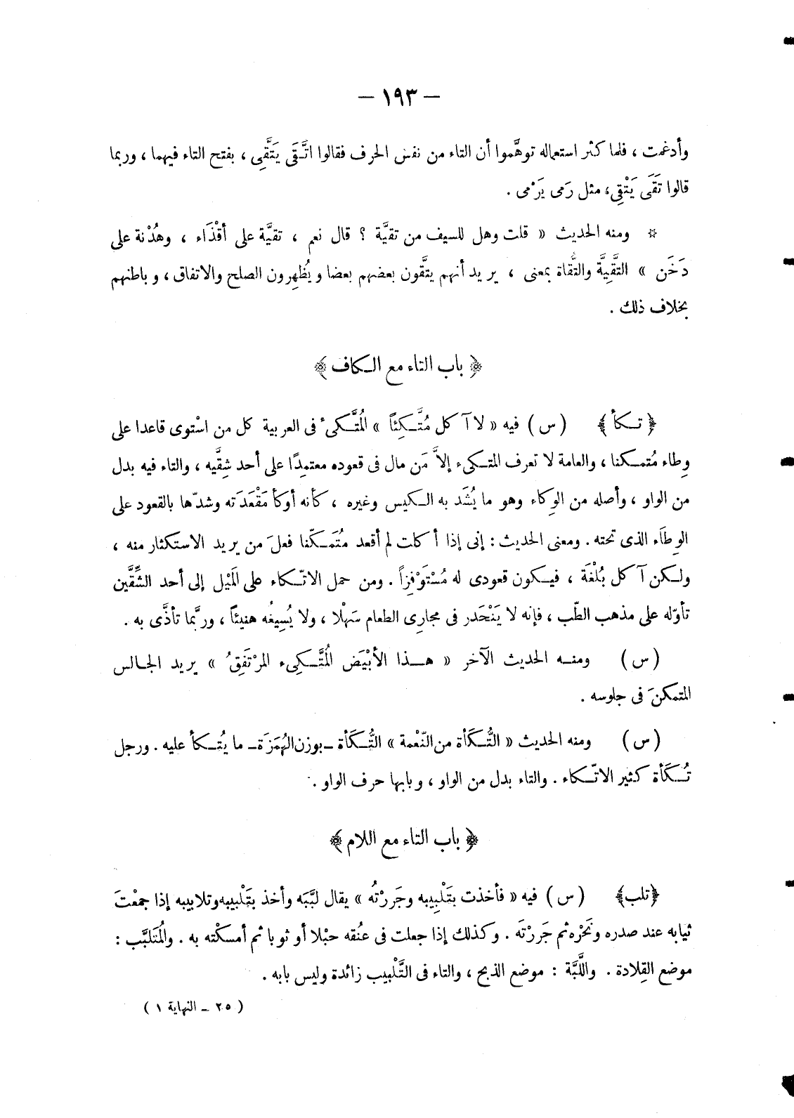بَابُ الثَّاءِ مَعَ الْكَافِ