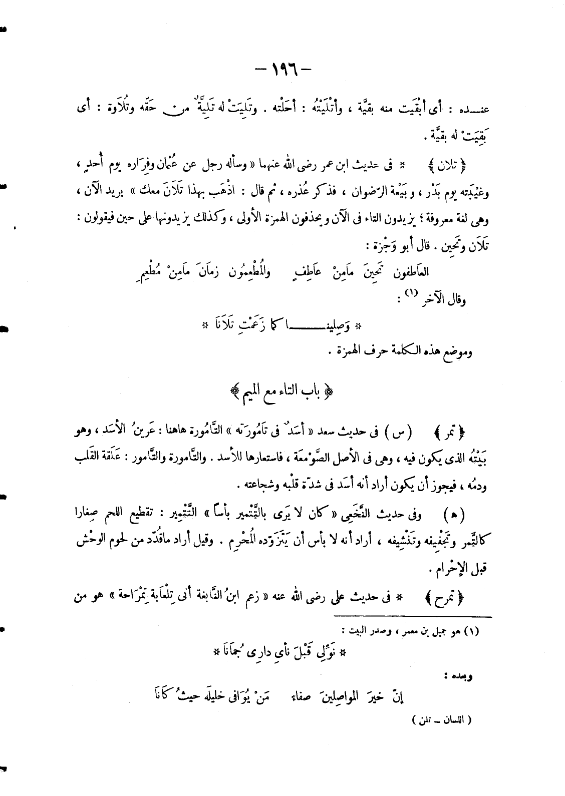 (س) وَمِنْهُ حَدِيثُ عَلِيٍّ رَضِيَ اللَّهُ عَنْهُ «كَانُوا يَبْعَرون وأنْتُم تَثْلِطُون ثَلْطاً» أَيْ كَانُوا يَتَغَوّطون يَابِسًا كالبَعَر؛ لِأَنَّهُمْ كَانُوا قَلِيلِي الأكْل والمآكِل، وَأَنْتُمْ تَثْلِطُون رَقيقا، وَهُوَ إِشَارَةٌ إِلَى كَثْرة الْمَآكِلِ وتَنَوُّعها.