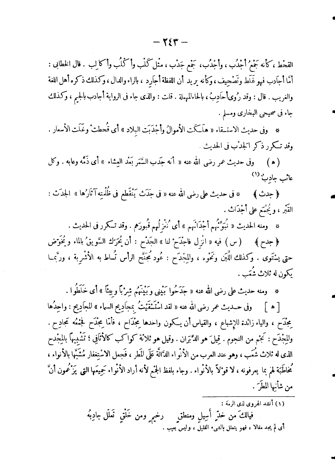 وَمِنْ غَرِيبِ مَا يُرْوَى فِي حَدِيثِ الزَّكَاةِ «لَا تأخُذُوا مِنْ جَزَرَاتِ أمْوال النَّاس» أَيْ مَا يَكُونُ قَدْ أعِدَّ للْأكْل، والمشْهُور بِالْحَاءِ الْمُهْمَلَةِ.