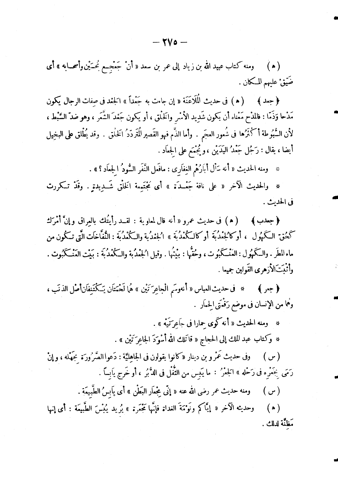 (س) وَمِنْهُ حَدِيثُ طَلْحَةَ بْنِ مُصَرِّف «رَأَى رجُلا يَضْحك فَقَالَ: إنَّ هَذَا لَمْ يَشْهَد الجَمَاجِم» يُرِيدُ وقْعَة دَير الجماجِم: أَيْ إِنَّهُ لوْ رَأَى كَثرة مَنْ قُتل به من قُرَّاء المُسْلمين وسادَاتهم لَمْ يَضْحك. وَيُقَالُ للسَادات جَمَاجِم.