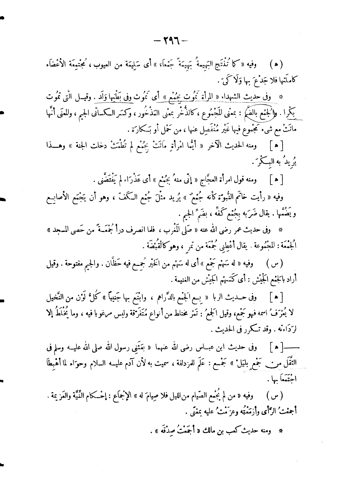 وَمِنَ الْمَضْمُومِ حَدِيثُ الصَّدَقَةِ «أيُّ الصَّدَقة أفْضَل؟ قَالَ: جُهْد المُقِلّ» أَيْ قَدْر مَا يَحْتَمِله حَالُ القَليل الْمال.