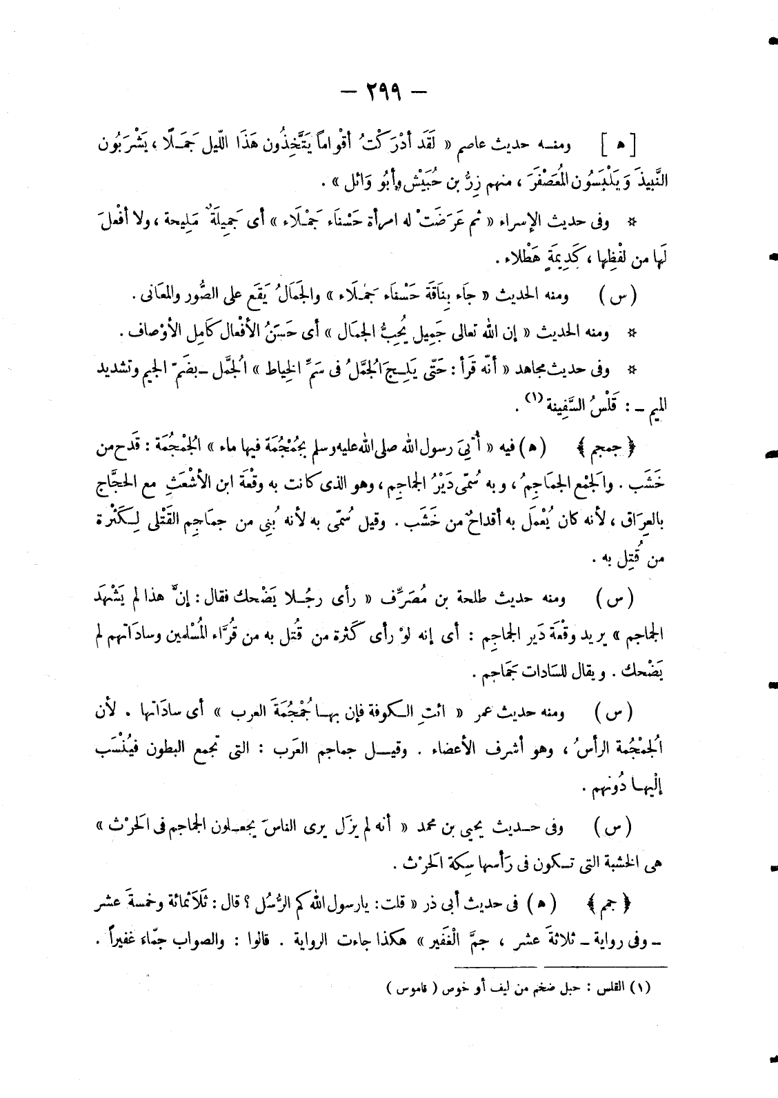 وَمِنْهُ الْحَدِيثُ «إِنَّكَ امْرُؤ فِيكَ جَاهِلِيَّة» قَدْ تَكَرَّرَ ذِكْرُهَا فِي الْحَدِيثِ، وَهِيَ الْحَالُ الَّتي كَانَتْ عَلَيْهَا الْعَرَبُ قَبْلَ الْإِسْلَامِ؛ مِنَ الجَهْل بِاللَّهِ ورَسُوله وَشَرَائِعِ الدِّين، والمفاخَرة بِالْأَنْسَابِ والكِبْرِ والتَّجَبُّر وَغَيْرِ ذَلِكَ.