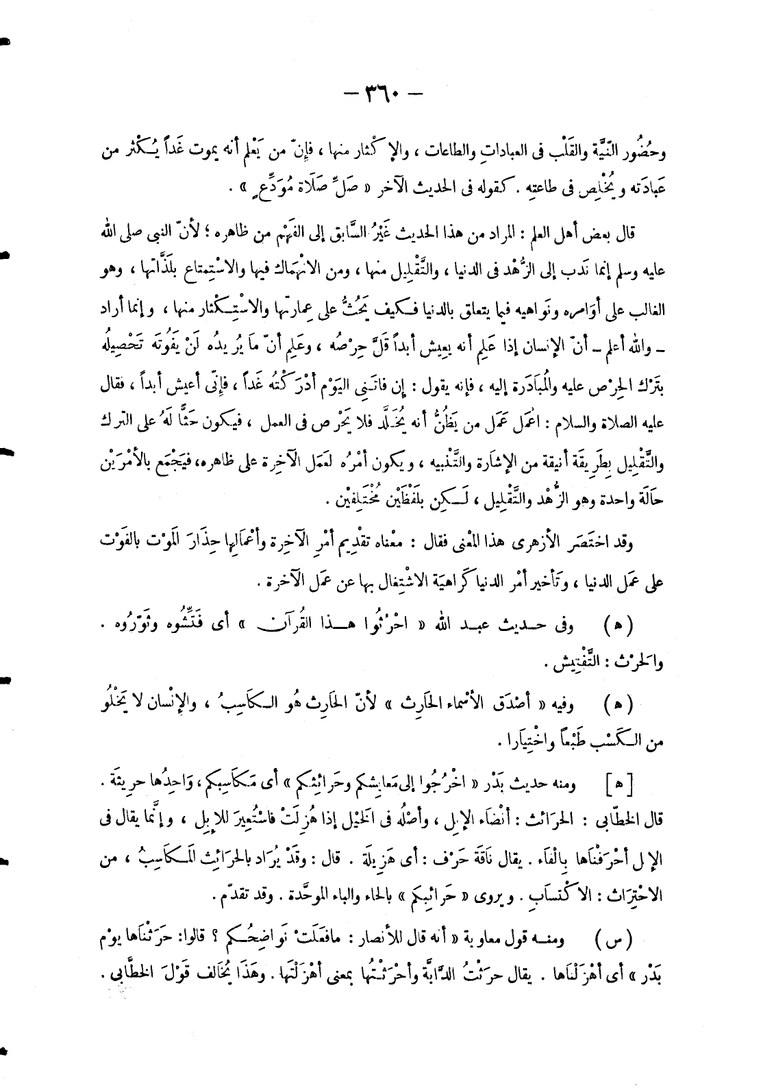 وَمِنْهُ حَدِيثُ جَرِيرٍ «وَلَا يَحْسِرُ صاحبها» أَيْ لَا يَتْعَبُ سَاقِيهَا، وَهُوَ أبْلَغ.