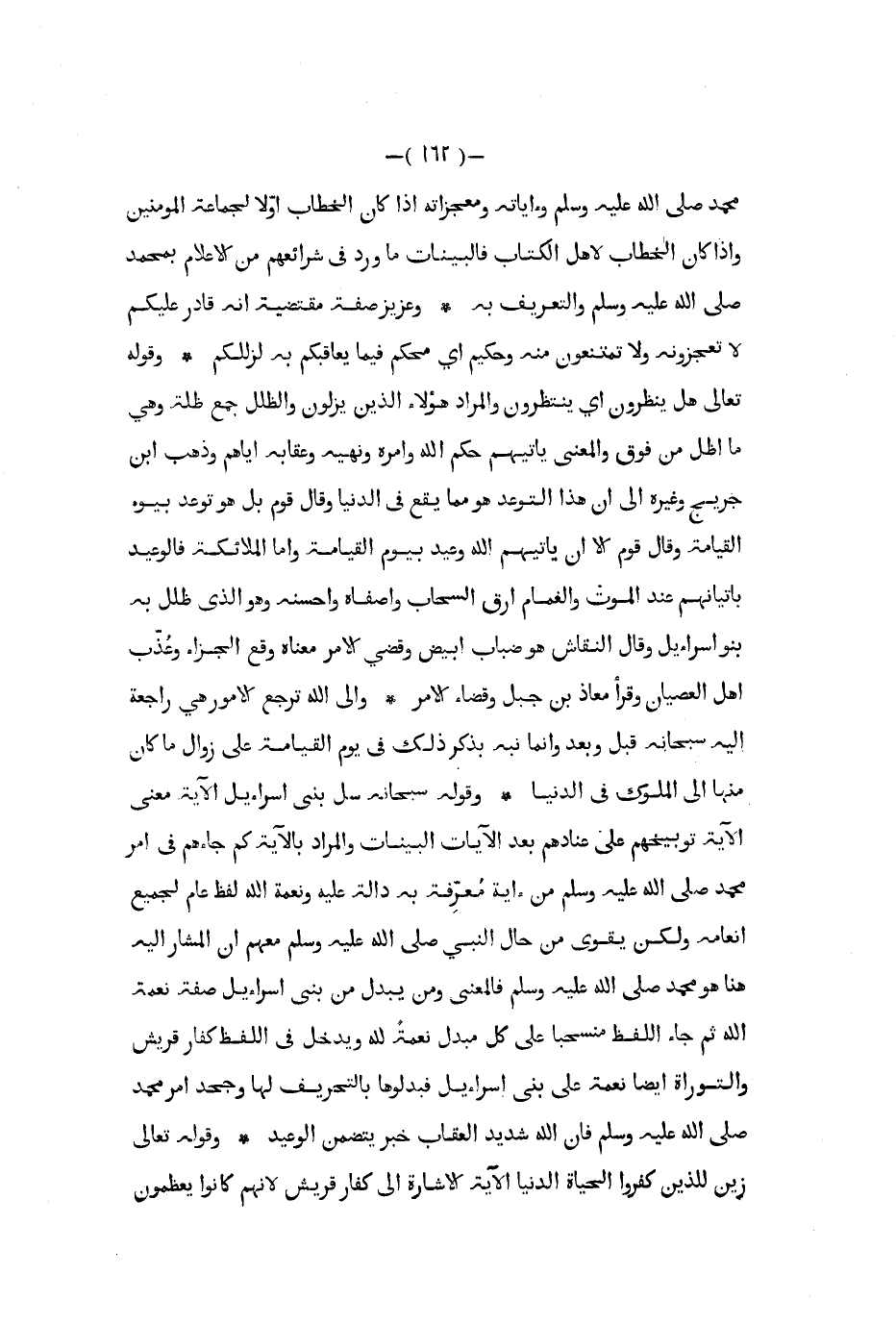 محمد صلى الله عليه و سلم وآياته ومعجزاته اذا كان الخطاب اولا لجماعة المؤمنين وإذا كان الخطاب لأهل الكتاب فالبينات ما ورد في شرائعهم من الإعلام بمحمد صلى الله عليه و سلم والتعريف به وعزيز صفة مقتضية انه قادر عليكم لا تعجزونه ولا تمتنعون منه وحكيم أي محكم فيما يعاقبكم به لزللكم وقوله تعالى هل ينظرون أي ينتظرون والمراد هؤلاء الذين يزلون والظلل جمع ظلة وهي ما اظل من فوق والمعنى يأتيهم حكم الله وأمره ونهيه وعقابه إياهم وذهب ابن جريج وغيره إلى أن هذا التوعد هو مما يقع في الدنيا وقال قوم بل هو توعد بيوم القيامة وقال قوم إلا أن يأتيهم الله وعيد بيوم القيامة واما الملائكة فالوعيد بإتيانهم عند الموت والغمام ارق السحاب واصفاه واحسنه وهو الذي ظلل به بنو اسراءيل وقال النقاش هو ضباب ابيض وقضي الأمر معناه وقع الجزاء وعذب اهل العصيان وقرأ معاذ بن جبل وقضاء الأمر والى الله ترجع الأمور هي راجعة اليه سبحانه قبل وبعد وإنما نبه بذكر ذلك في يوم القيامة على زوال ما كان منها الى الملوك في الدنيا وقوله سبحانه سل بني اسراءيل الآية معنى الآية توبيخهم على عنادهم بعد الآيات البينات والمراد بالآية كم جاءهم في امر محمد صلى الله عليه و سلم من ءاية معرفة به دالة عليه ونعمة الله لفظ عام لجميع أنعامه ولكن يقوى من حال النبي صلى الله عليه و سلم معهم أن المشار اليه هنا هو محمد صلى الله عليه و سلم فالمعنى ومن يبدل من بني إسراءيل صفة نعمة الله ثم جاء اللفظ منسحبا على كل مبدل نعمة لله ويدخل في اللفظ كفار قريش والتوراة ايضا نعمة على بني اسراءيل فبدلوها بالتحريف لها وجحد امر محمد صلى الله عليه و سلم فإن الله شديد العقاب خبر يتضمن الوعيد وقوله تعالى زين للذين كفروا الحياة الدنيا الآية الاشارة الى كفار قريش لأنهم كانوا يعظمون