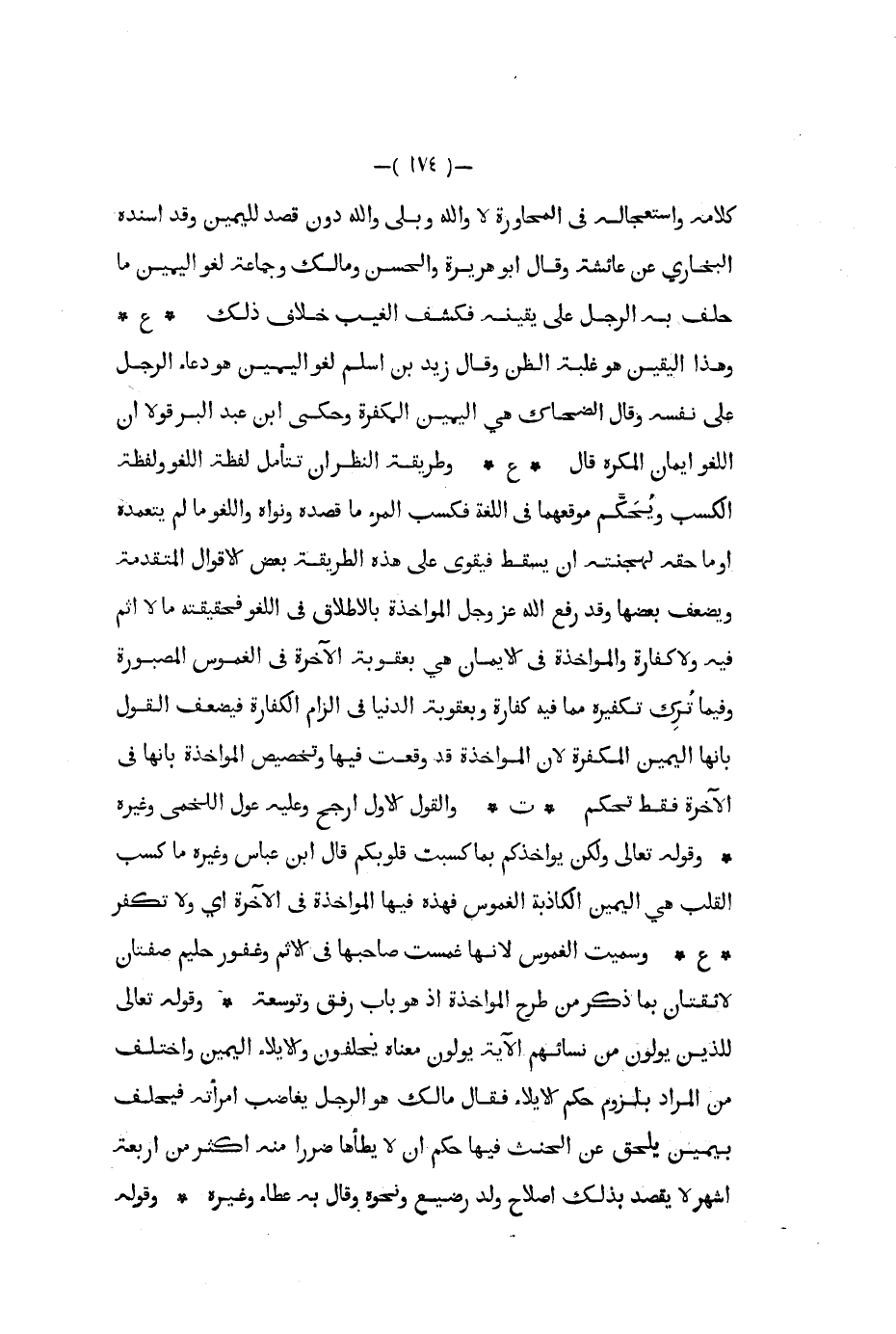 كلامه واستعجاله في المحاورة لا والله وبلى والله دون قصد لليمين وقد أسنده البخاري عن عائشة وقال أبو هريرة والحسن ومالك وجماعة لغو اليمين ما حلف به الرجل على يقينه فكشف الغيب خلاف ذلك ع وهذا اليقين هو غلبة الظن وقال زيد بن أسلم لغو اليمين هو دعاء الرجل على نفسه وقال الضحاك هي اليمين المكفرة وحكى ابن عبد البر قولا أن اللغو إيمان المكره قال ع وطريقة النظر أن تتأمل لفظة اللغو ولفظة الكسب ويحكم موقعهما في اللغة فكسب المرء ما قصده ونواه واللغو ما لم يتعمده أو ما حقه لهجنته إن يسقط فيقوي على هذه الطريقة بعض الأقوال المتقدمة ويضعف بعضها وقد رفع الله عز و جل المؤاخذة بالإطلاق في اللغو فحقيقته ما لا إثم فيه ولا كفارة والمؤاخذة في الإيمان هي بعقوبة الآخرة في الغموس المصبورة وفيما ترك تكفيره مما فيه كفارة وبعقوبة الدنيا في إلزام الكفارة فيضعف القول بأنها اليمين المكفرة لان المواخذةقد وقعت فيها وتخصيص المواخذة بأنها في الآخرة فقط تحكم ت والقول الأول ارجح وعليه عول اللخمي وغيره وقوله تعالى ولكن يؤاخذكم بما كسبت قلوبكم قال ابن عباس وغيره ما كسب القلب هي اليمين الكاذبة الغموس فهذه فيها المواخذة في الآخرة أي ولا تكفر ع وسميت الغموس لأنها غمست صاحبها في الإثم وغفور حليم صفتان لائقتان بما ذكر من طرح المؤاخذة إذ هو باب رفق وتوسعة وقوله تعالى للذين يولون من نسائهم الآية يولون معناه يحلفون والايلاء اليمين واختلف من المراد بلزوم حكم الإيلاء فقال مالك هو الرجل يغاضب امرأته فيحلف بيمين يلحق عن الحنث فيها حكم أن لا يطأها ضررا منه أكثر من أربعة أشهر لا يقصد بذلك إصلاح ولد رضيع ونحوه وقال به عطاء وغيره وقوله