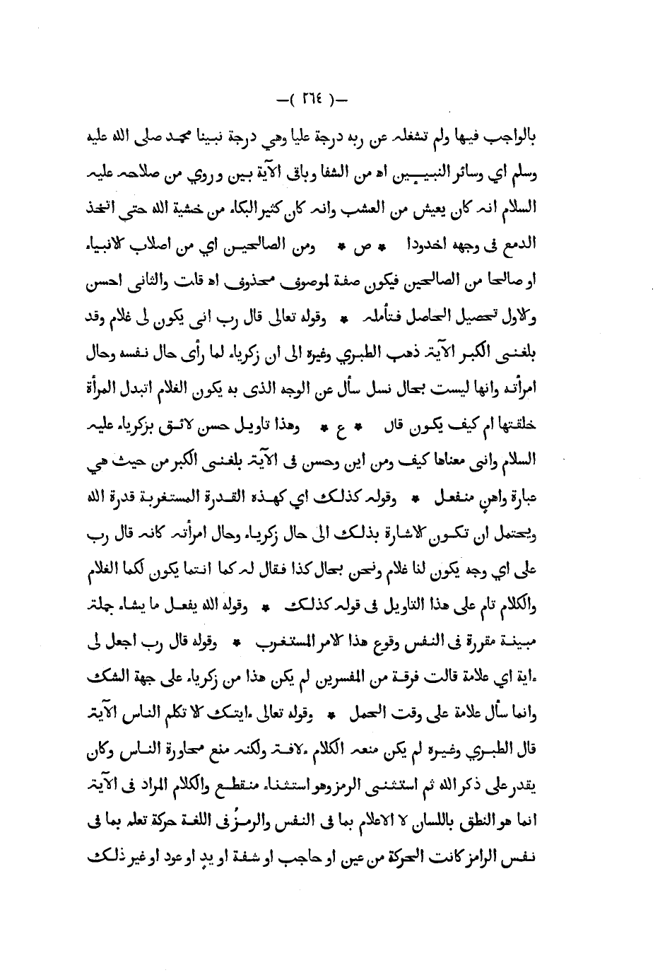بالواجب فيها ولم تشغله عن ربه درجة عليا وهي درجة نبينا محمد صلى الله عليه و سلم أي وسائر النبيين أ ه من الشفا وباقي الآية بين وروي من صلاحه عليه السلام أنه كان يعيش من العشب وأنه كان كثير البكاء من خشية الله حتى اتخذ الدمع في وجهه أخدودا ص ومن الصالحين أي من اصلاب الأنبياء أو صالحا من الصالحين فيكون صفة لموصوف محذوف أ ه قلت والثاني أحسن والأول تحصيل الحاصل فتأمله وقوله تعالى قال رب أنى يكون لي غلام وقد بلغني الكبر الآية ذهب الطبري وغيره إلى أن زكريا لما رأى حال نفسه وحال امرأته وأنها ليست بحال نسل سأل عن الوجه الذي به يكون الغلام أتبدل المرأة خلقتها أم كيف يكون قال ع وهذا تأويل حسن لا ئق بزكريا عليه السلام وأنى معناها كيف ومن أين وحسن في الآية بلغني الكبر من حيث هي عبارة واهن منفعل وقوله كذلك أي كهذه القدرة المستغربة قدرة الله ويحتمل أن تكون الإشارة بذلك إلى حال زكريا وحال امرأته كأنه قال رب على أي وجه يكون لنا غلام ونحن بحال كذا فقال له كما أنتما يكون لكما الغلام والكلام تام على هذا التأويل في قوله كذلك وقوله الله يفعل ما يشاء جملة مبينة مقررة في النفس وقوع هذا الأمر المستغرب وقوله قال رب اجعل لي أية أي علامة قالت فرقة من المفسرين لم يكن هذا من زكريا على جهة الشك وانما سأل علامة على وقت الحمل وقوله تعالى آيتك ألا تكلم الناس الآية قال الطبري وغيره لم يكن منعه الكلام لآفة ولكنه منع محاورة الناس وكان يقدر على ذكر الله ثم استثنى الرمز وهو استثناء منقطع والكلام المراد في الآية إنما هو النطق باللسان لا الإعلام بما في النفس والرمز في اللغة حركة تعلم بما في نفس الرامز كانت الحركة من عين أو حاجب أو شفة أو يد أو عود أو غير ذلك