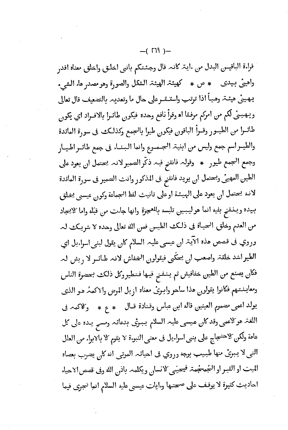 قراءة الباقين البدل من أية كأنه قال وجئتكم بأني أخلق وأخلق معناه أقدر وأهيء بيدي ص كهيئة الهيئة الشكل والصورة وهو مصدر هاء الشيء يهيىء هيئة وهيأ إذا ترتب واستقر على حال ما وتعديه بالتضعيف قال تعالى ويهيىء لكم من أمركم مرفقا أ ه وقرأ نافع وحده فيكون طائرا بالإفراد أي يكون طائرا من الطيور وقرأ الباقون فيكون طيرا بالجمع وكذلك في سورة المائدة والطير اسم جمع وليس من أبنية الجموع وإنما البناء في جمع طائر أطيار وجمع الجمع طيور وقوله فانفخ فبه ذكر الضمير لأنه يحتمل أن يعود على الطين المهيء ويحتمل ان يريد فانفخ في المذكور وأنث الضمير في سورة المائدة لأنه يحتمل أن يعود على الهيئة أو على تأنيث لفظ الجماعة وكون عيسى يخلق بيده وينفخ بفيه إنما هو ليبين تلبسه بالمعجزة وأنها جاءت من قبله وأما الإيجاد من العدم وخلق الحياة في ذلك الطين فمن الله تعالى وحده لا شريك له وروي في قصص هذه الآية أن عيسى عليه السلام كان يقول لبني إسرائيل أي الطير أشد خلقة وأصعب أن يحكى فيقولون الخفاش لأنه طائر لا ريش له فكان يصنع من الطين خفافيش ثم ينفخ فيها فتطير وكل ذلك بحضرة الناس ومعاينتهم فكانوا يقولون هذا ساحر وابرىء معناه أزيل المرض والأكمه هو الذي يولد أعمى مضموم العينين قاله ابن عباس وقتادة قال ع والأكمه في اللغة هو الأعمى وقد كان عيسى عليه السلام يبريء بدعائه ومسح يده على كل عاهة ولكن الاحتجاج على بني إسرائيل في معنى النبوءة لا يقوم إلا بالابراء من العلل التي لا يبرىء منها طبيب بوجه وروي في أحيائه الموتى أنه كان يضرب بعصاه الميت أو القبر أو الجمجمة فيحيى الإنسان ويكلمه بإذن الله وفي قصص الإحياء أحاديث كثيرة لا يوقف على صحتها وآيات عيسى عليه السلام إنما تجري فيما