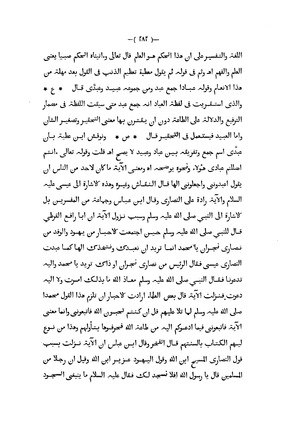 اللغة والتفسير على أن هذا الحكم هو العلم قال تعالى وءاتيناه الحكم صبيا يعني العلم والفهم ا ه وثم في قوله ثم يقول معطية تعظيم الذنب في القول بعد مهلة من هذا الأنعام وقوله عبادا جمع عبد ومن جموعه عبيد وعبدي قال ع والذي استقريت في لفظة العباد أنه جمع عبد متى سيقت اللفظة في مضمار الترفيع والدلالة على الطاعة دون أن يقترن بها معنى التحقير وتصغير الشأن وأما العبيد فيستعمل في التحقير قال ص ونوقش ابن عطية بأن عبدي اسم جمع وتفريقه بين عباد وعبيد لا يصح ا ه قلت وقوله تعالى ءانتم أضللتم عبادي هؤلاء ونحوه يوضحه ا ه ومعنى الآية ما كان لأحد من الناس أن يقول اعبدوني واجعلوني إلها قال النقاش وغيره وهذه الإشارة إلى عيسى عليه السلام والآية رادة على النصارى وقال ابن عباس وجماعة من المفسرين بل الإشارة إلى النبي صلى الله عليه و سلم وسبب نزول الآية أن أبا رافع القرظي قال للنبي صلى الله عليه و سلم حين اجتمعت الأحبار من يهود والوفد من نصارى نجران يا محمد إنما تريد أن نعبدك ونتخذك إلها كما عبدت النصارى عيسى فقال الرئيس من نصارى نجران أو ذاك تريد يا محمد وإليه تدعونا فقال النبي ص - معاذ الله ما بذلك امرت ولا اليه دعوت فنزلت الآية قال بعض العلماء أرادت الأحبار أن تلزم هذا القول محمدا صلى الله عليه و سلم لما تلا عليهم قل إن كنتم تحبون الله فاتبعوني وإنما معنى الآية فاتبعوني فيما أدعوكم إليه من طاعة الله فحرفوها بتأولهم وهذا من نوع ليهم الكتاب بإلسنتهم قال الفخر وقال ابن عباس أن الآية نزلت بسبب قول النصارى المسيح ابن الله وقول اليهود عزيز ابن الله وقيل أن رجلا من المسلمين قال يا رسول الله أفلا نسجد لك فقال عليه السلام ما ينبغي السجود