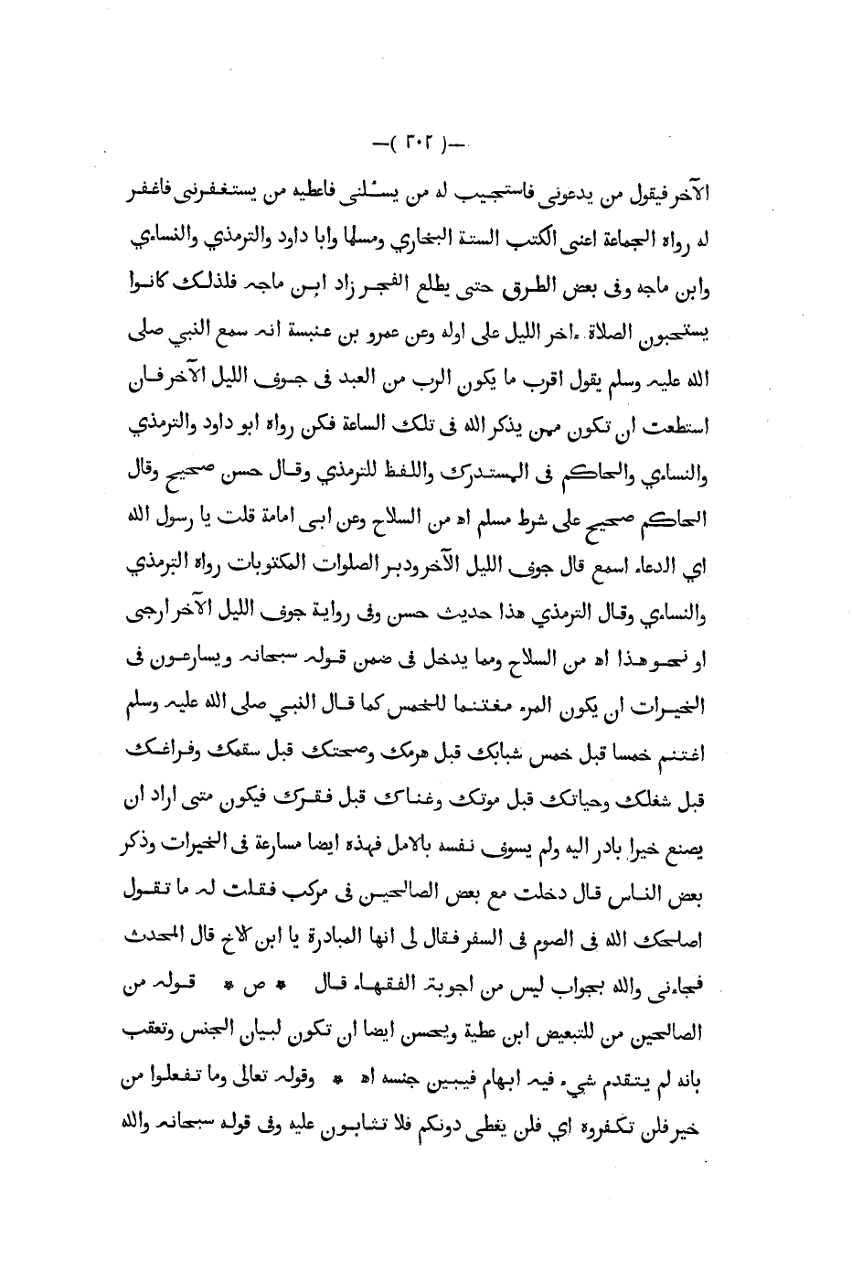 الآخر فيقول من يدعوني فاستجيب له من يسئلني فأعطيه من يستغفرني فاغفر له رواه الجماعة اعنى الكتب الستة البخاري وملسما وأبا داود والترمذي والنسائي وابن ماجه وفي بعض الطرق حتى يطلع الفجر زاد ابن ماجه فلذلك كانوا يستحبون الصلاة آخر الليل على أوله وعن عمرو بن عنبسة أنه سمع النبي صلى الله عليه و سلم يقول أقرب ما يكون الرب من العبد في جوف الليل الآخر فإن استطعت أن تكون ممن يذكر الله في تلك الساعة فكن رواه ابو داود والترمذي والنسائي والحاكم في المستدرك واللفظ للترمذي وقال حسن صحيح وقال الحاكم صحيح على شرط مسلم اه من السلاح وعن أبي إمامة قلت يا رسول الله أي الدعاء أسمع قال جوف الليل الآخر ودبر الصلوات المكتوبات رواه الترمذي ولانسائي وقال الترمذي هذا حديث حسن وفي رواية جوف الليل الآخر ارجى أو نحو هذا من السلاح ومما يدخل في ضمن قوله سبحانه ويسارعون في الخيرات أن يكون المرء مغتنما للخمس كما قال النبي صلى الله عليه و سلم اغتنم خمسا قبل خمس شبابك قبل هرمك وصحتك قبل سقمك وفراغك قبل شغلك وحياتك قبل موتك وغناك قبل فقرك فيكون متى أراد أن يصنع خيرا بادر إليه ولم يسوف نفسه بالأمل فهذه أيضا مسارعة في الخيرات وذكر بعض الناس قال دخلت مع بعض الصالحين في مركب فقلت له ما تقول أصلحك الله في الصوم في السفر فقال لي إنها المبادرة يا ابن الأخ قال المحدث فجاءني والله بجواب ليس من أجوبة الفقهاء قال ص قوله من الصالحين من للتبعيض ابن عطية ويحسن أيضا أن يكون لبيان الجنس وتعقب بأنه لم يتقدم شيء فيه إبهام فيبين جنسه اه وقوله تعالى وما تفعلوا من خير فلن تكفروه أي فلن يعطى دونكم فلا تثابون عليه وفي قوله سبحانه والله