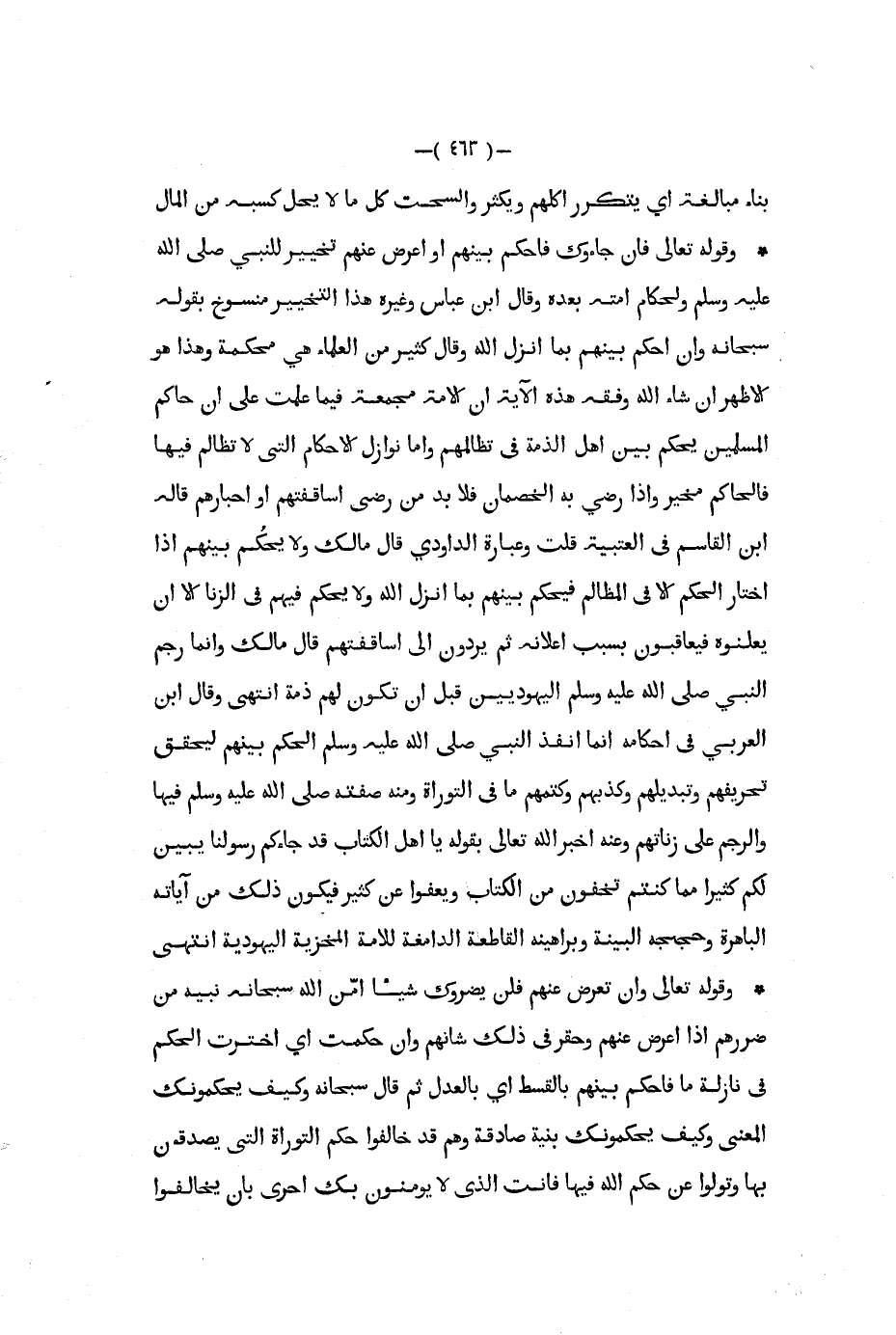 بناء مبالغة أي يتكرر أكلهم ويكثر والسحت كل ما لا يحل كسبه من المال وقوله تعالى فإن جاءوك فاحكم بينهم أو أعرض عنهم تخيير للنبي صلى الله عليه و سلم ولحكام أمته بعده وقال ابن عباس وغيره هذا التخيير منسوخ بقوله سبحانه وإن أحكم بينهم بما أنزل الله وقال كثير من العلماء هي محكمة وهذا هو الأظهر إن شاء الله وفقه هذه الآية أن الأمة مجمعة فيما علمت على أن حاكم المسلمين يحكم بين أهل الذمة في تظالمهم وأما نوازل الأحكام التي لا تظالم فيها فالحاكم مخير وإذا رضي به الخصمان فلا بد من رضي أساقفتهم أو أحبارهم قاله ابن القاسم في العتبية قلت وعبارة الداودي قال مالك ولا يحكم بينهم إذا اختار الحكم إلا في المظالم فيحكم بينهم بما أنزل الله ولا يحكم فيهم في الزنا إلا أن يعلنوه فيعاقبون بسبب إعلانه ثم يردون إلى أساقفتهم قال مالك وإنما رجم النبي صلى الله عليه و سلم اليهوديين قبل أن تكون لهم ذمة انتهى وقال ابن العربي في أحكامه إنما أنفذ النبي صلى الله عليه و سلم الحكم بينهم ليحقق تحريفهم وتبديلهم وكذبهم وكتمهم ما في التوراة ومنه صفته صلى الله عليه و سلم فيها والرجم على زناتهم وعنه أخبر الله تعالى بقوله يا أهل الكتاب قد جاءكم رسولنا يبين لكم كثيرا مما كنتم تخفون من الكتاب ويعفوا عن كثير فيكون ذلك من آياته الباهرة وحججه البينة وبراهينه القاطعة الدامغة للأمة المخزية اليهودية انتهى وقوله تعالى وإن تعرض عنهم فلن يضروك شيئا أمن الله سبحانه نبيه من ضررهم إذا أعرض عنهم وحقر في ذلك شأنهم وإن حكمت أي اخترت الحكم في نازلة ما فأحكم بينهم بالقسط أي بالعدل ثم قال سبحانه وكيف يحكمونك المعنى وكيف يحكمونك بنية صادقة وهم قد خالفوا حكم التوراة التي يصدقون بها وتولوا عن حكم الله فيها فأنت الذي لا يؤمنون بك أحرى بأن يخالفوا
