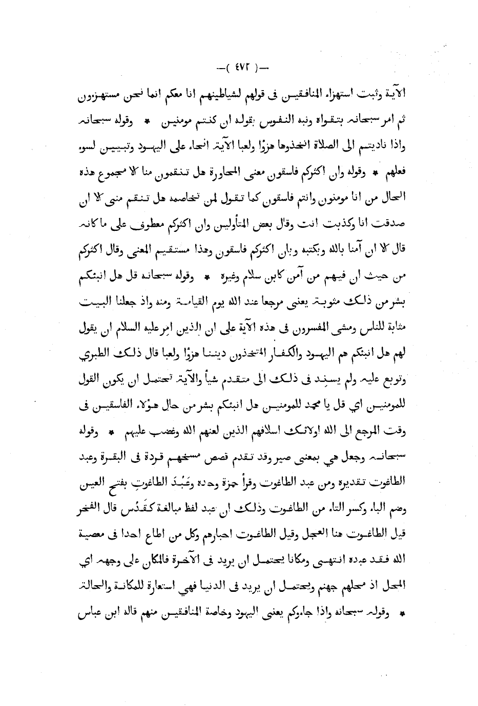 الآية وثبت استهزاء المنافقين في قولهم لشياطينهم إنا معكم إنما نحن مستهزءون ثم أمر سبحانه بتقواه ونبه النفوس بقوله إن كنتم مؤمنين وقوله سبحانه وإذا ناديتهم إلى الصلاة اتخذوها هزؤا ولعبا الآية انحاء على اليهود وتبيين لسوء فعلهم وقوله وإن أكثركم فاسقون معنى المحاورة هل تنقمون منا إلا مجموع هذه الحال من انا مؤمنون وأنتم فاسقون كما تقول لمن تخاصمه هل تنقم مني إلا أن صدقت انا وكذبت أنت وقال بعض المتأولين وإن أكثركم معطوف على ما كأنه قال إلا أن آمنا بالله ويكتبه وبأن أكثركم فاسقون وهذا مستقيم المعنى وقال أكثركم من حيث أن فيهم من آمن كابن سلام وغيره وقوله سبحانه قل هل أنبئكم بشر من ذلك مثوبة يعني مرجعا عند الله يوم القيامة ومنه وإذ جعلنا البيت مثابة للناس ومشى المفسرون في هذه الآية على أن الذين أمر عليه السلام أن يقول لهم هل أنبئكم هم اليهود والكفار المتخذون ديننا هزؤا ولعبا قال ذلك الطبري وتوبع عليه ولم يسند في ذلك إلى متقدم شيئا والآية تحتمل أن يكون القول للمؤمنين أي قل يا محمد للمؤمنين هل أنبئكم بشر من حال هؤلاء الفاسقين في وقت المرجع إلى الله أولائك أسلافهم الذين لعنهم الله وغضب عليهم وقوله سبحانه وجعل هي بمعنى صير وقد تقدم قصص مسخهم قردة في البقرة وعبد الطاغوت تقديره ومن عبد الطاغوت وقرأ حمزة وحده وعبد الطاغوت بفتح العين وضم الباء وكسر التاء من الطاغوت وذلك أن عبد لفظ مبالغة كقدس قال الفخر قيل الطاغوت هنا العجل وقيل الطاغوت أحبارهم وكل من أطاع أحدا في معصية الله فقد عبده انتهى ومكانا يحتمل أن يريد في الآخرة فالمكان على وجهه أي المحل إذ محلهم جنهم ويحتمل أن يريد في الدنيا فهي استعارة للمكانة والحالة وقوله سبحانه وإذا جاءوكم يعني اليهود وخاصة المنافقين منهم قاله ابن عباس