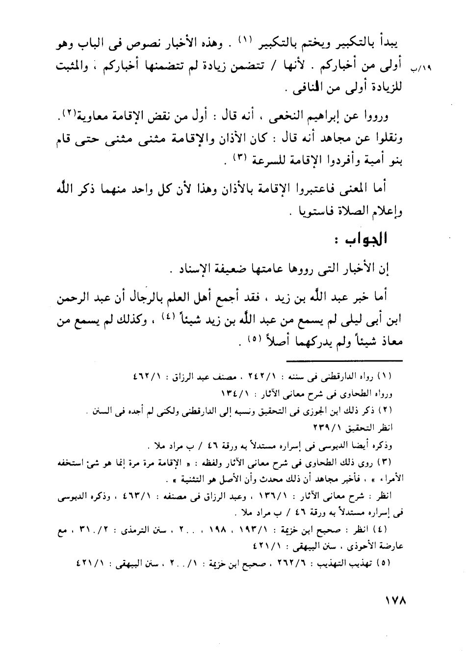 أما خبر عبد الله بن زيد، فقد أجمع أهل العلم بالرجال أن عبد الرحمن ابن أبي ليلى لم يسمع من عبد الله بن زيد شيئاً، وكذلك لم يسمع من معاذ شيئاً ولم يدركهما أصلاً.