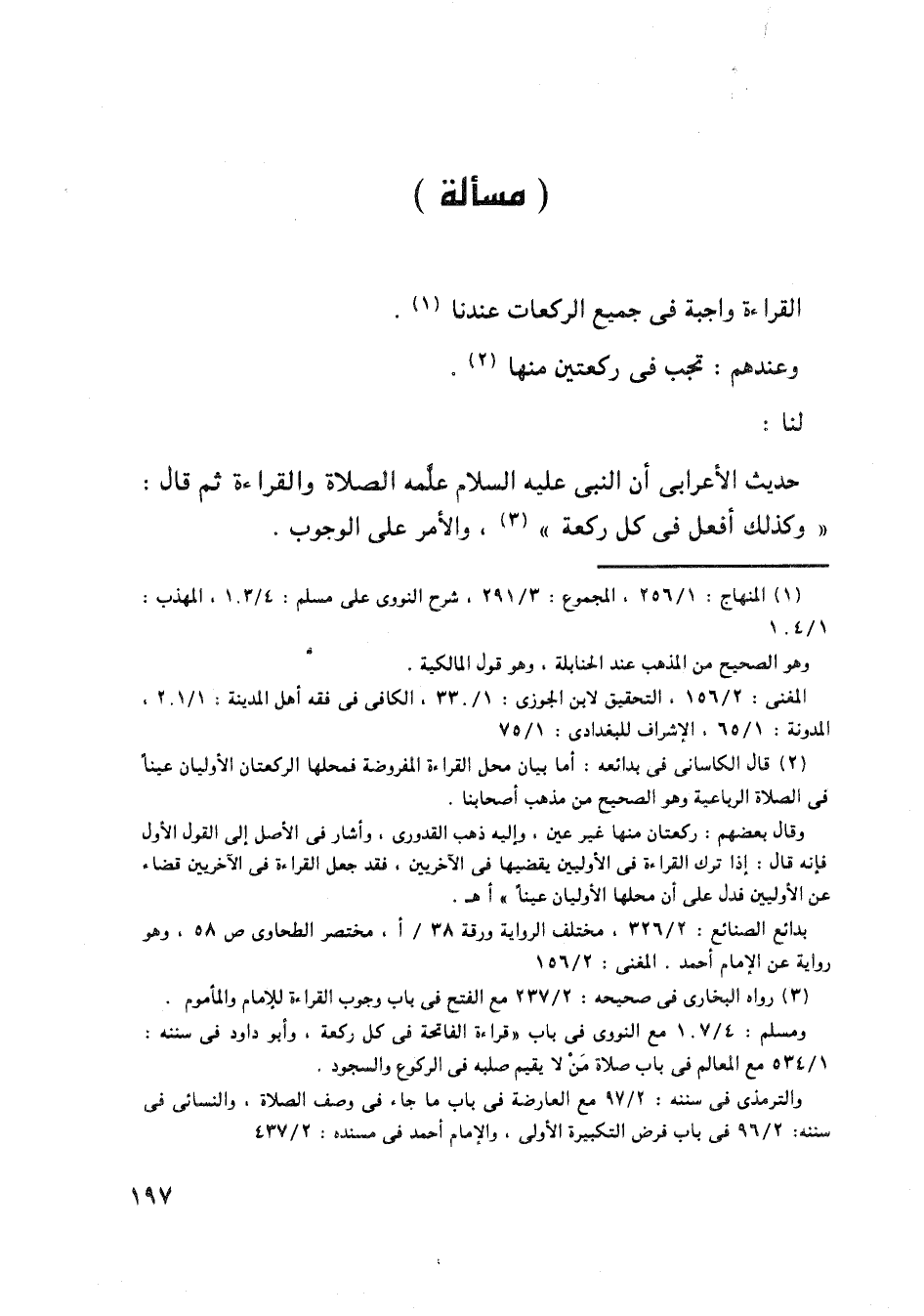 حديث الأعرابي أن النبي عليه السلام علمه الصلاة والقراءة ثم قال: ((وكذلك أفعل في كل ركعة))، والأمر على الوجوب.