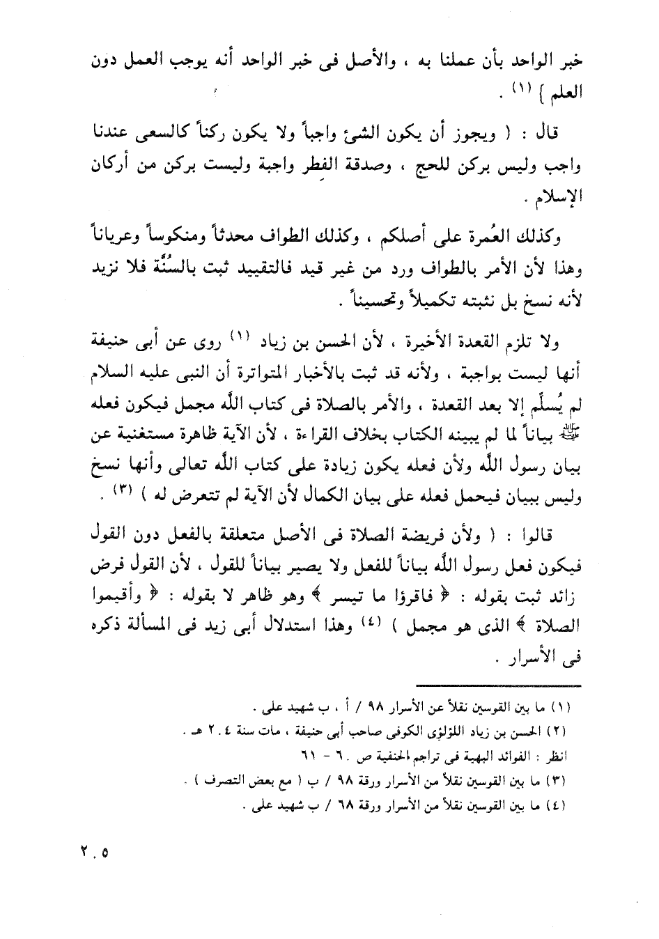 ولا تلزم القعدة الأخيرة، لأن الحسن بن زياد روى عن أبي حنيفة أنها ليست بواجبة، ولأنه قد ثبت بالأخبار المتواترة أن النبي عليه السلام لم يسلم إلا بعد القعدة، والأمر بالصلاة في كتاب الله مجمل فيكون فعله - صلى الله عليه وسلم - بياناً لما لم يبينه الكتاب بخلاف القراءة، لأن الآية ظاهرة مستغنية عن بيان رسول الله ولأن فعله يكون زيادة على كتاب الله تعالى وأنها نسخ وليس ببيان فيحمل فعله على بيان الكمال لأن الآية الكمال لأن الآية لم تتعرض له).