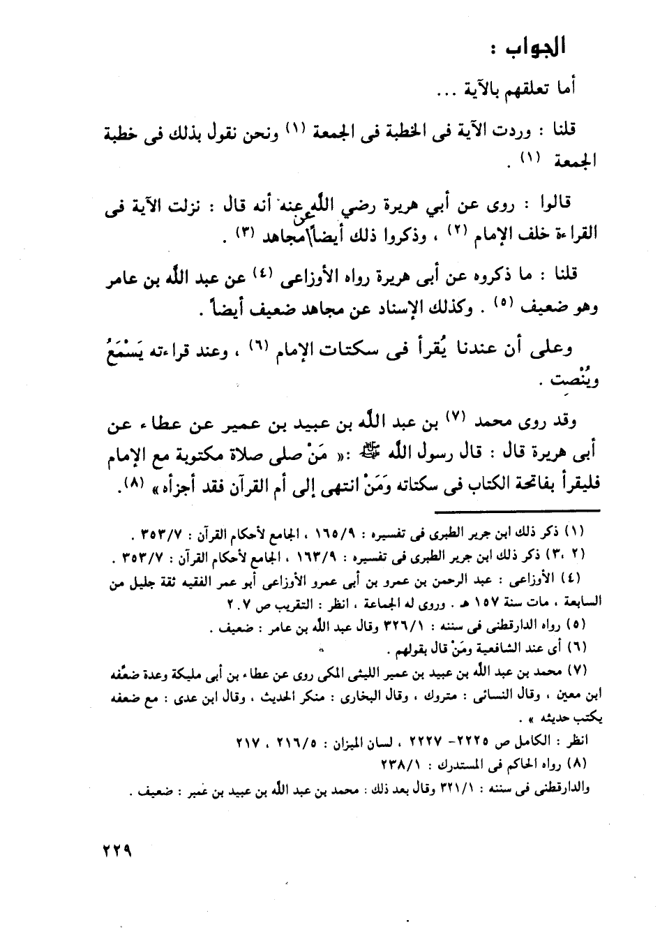 قلنا: ما ذكروه عن أبي هريرة رواه الأوزاعي عن عبد الله بن عامر وهو ضعيف. وكذلك الإسناد عن مجاهد ضعيف أيضاً.