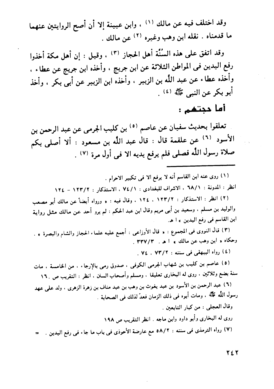 وقد اتفق على هذه السنة أهل الحجاز، وقيل: إن أهل مكة أخذوا رفع اليدين في المواطن الثلاثة عن ابن جريج، وأخذه ابن جريج عن عطاء، وأخذه عطاء عن عبد الله بن الزبير، وأخذه ابن الزبير عن أبي بكر، وأخذ أبو بكر عن النبي - صلى الله عليه وسلم -.