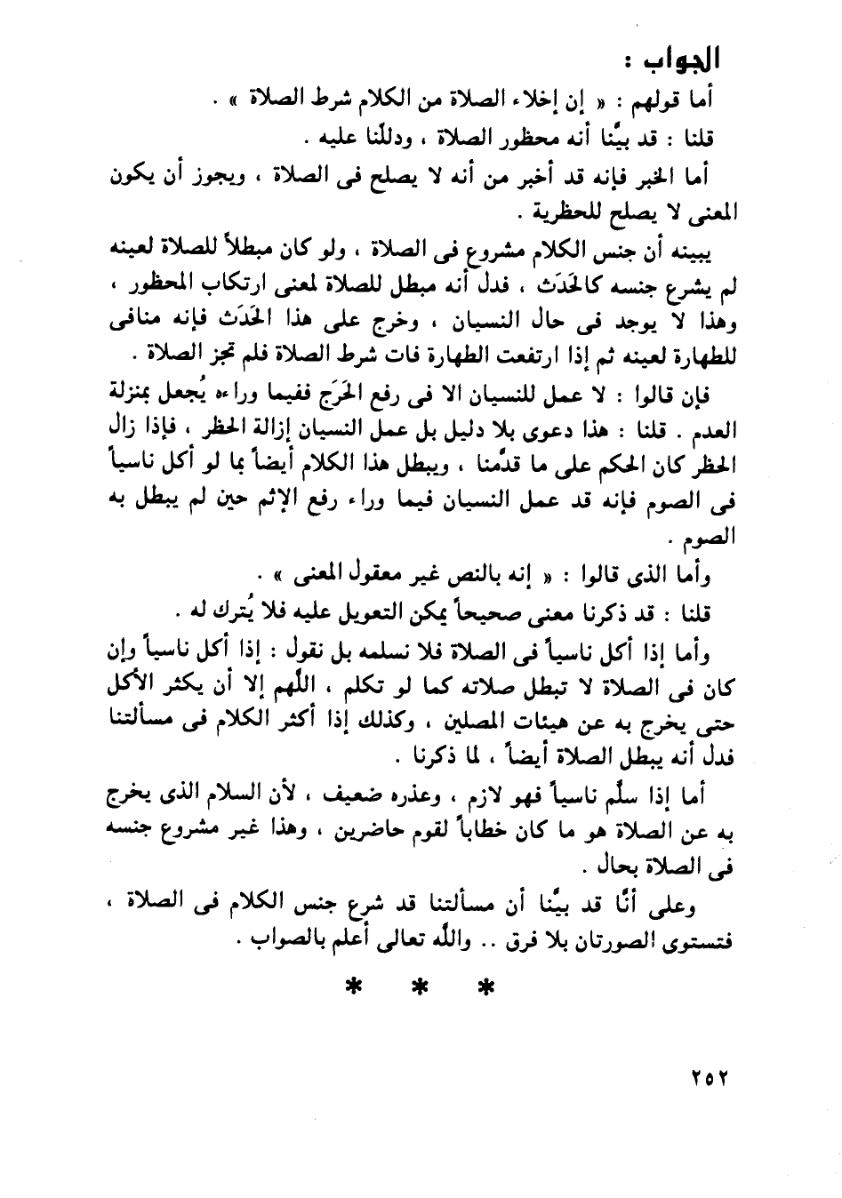 يبينه أن جنس الكلام مشروع في الصلاة، ولو كان مبطلاً للصلاة لعينه لم يشرع جنسه كالحدث، فدل أنه مبطل للصلاة لمعنى ارتكاب المحظور، وهذا لا يوجد في حال النسيان، وخرج على هذا الحدث فإنه منافي للطهارة لعينه ثم إذا ارتفعت الطهارة فات شرط الصلاة فلم تجز الصلاة.