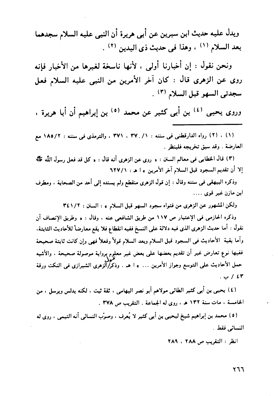 ونحن نقول: إن أخبارنا أولى، لأنها ناسخة لغيرها من الأخبار فإنه روى عن الزهري قال: كان آخر الأمرين من النبي عليه السلام فعل سجدتي السهو قبل السلام.
