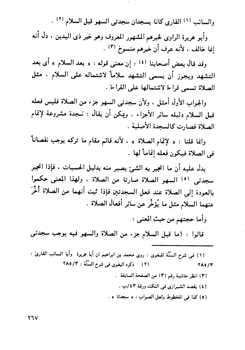 يدل عليه أن ما أنجبر به الشيء يصير منه بدليل الحسبات، فإذا أنجبر سجدتي السهو الصلاة صارتا من الصلاة، ولهذا المعنى حكموا بالعودة إلى الصلاة عند فعل السجدتين فإذا ثبت أنهما من الصلاة أخر عنهما السلام مثل ما يؤخر عن سائر أفعال الصلاة.