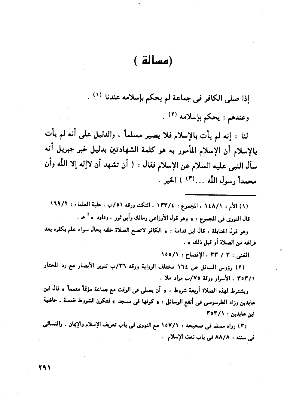 إذا صلى الكافر في جماعة لم يحكم بإسلامه عندنا.