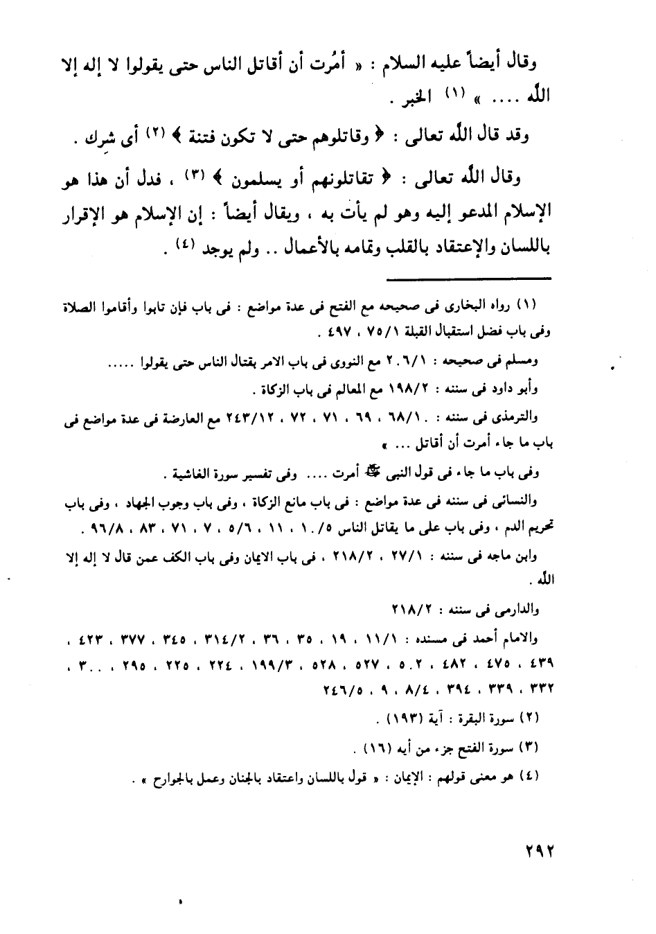 وقال أيضاً عليه السلام: ((أمرت أن أقاتل الناس حتى يقولوا لا إله إلا الله ....)) الخبر.