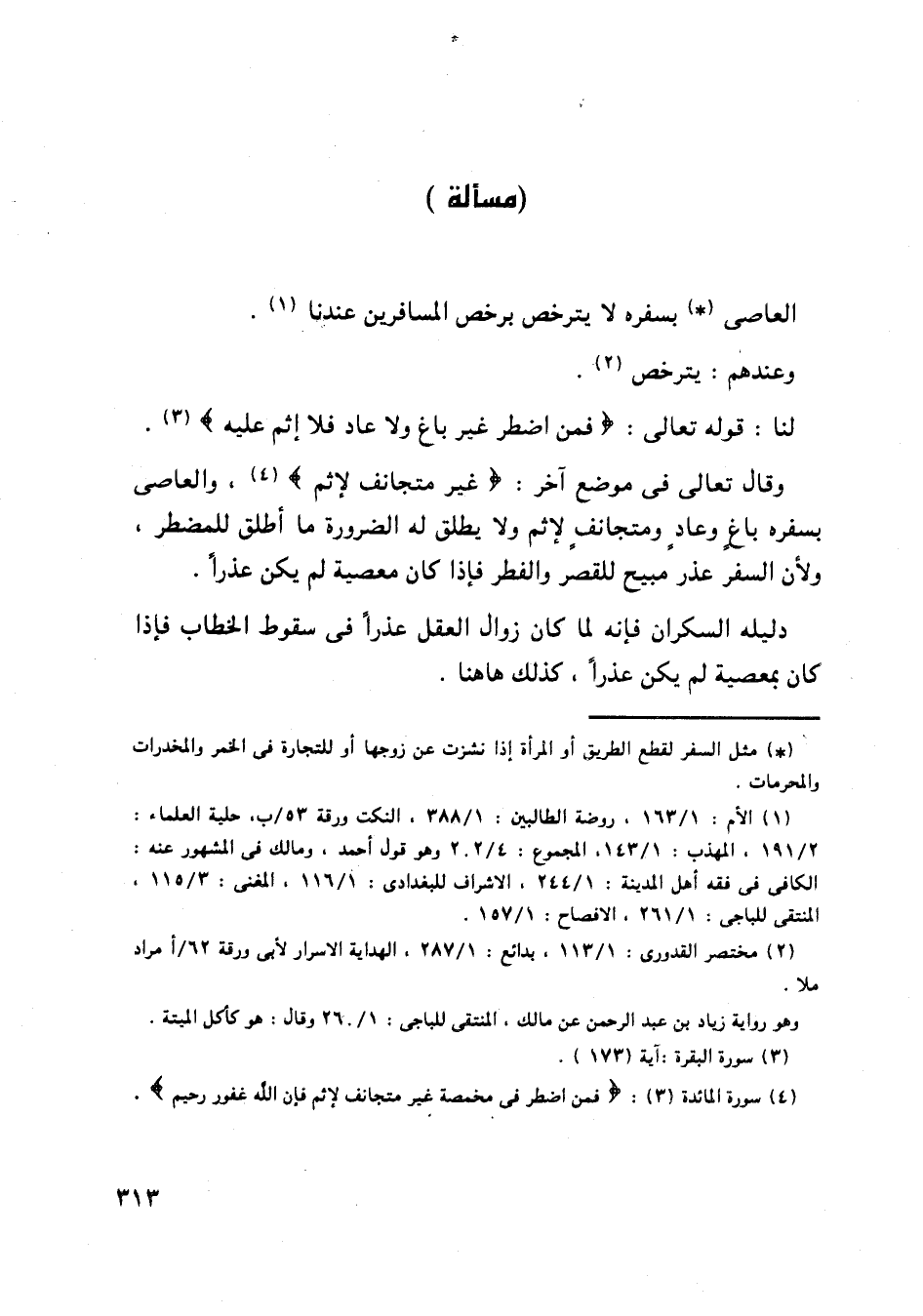 العاصي بسفره لا يترخص برخص المسافرين عندنا.