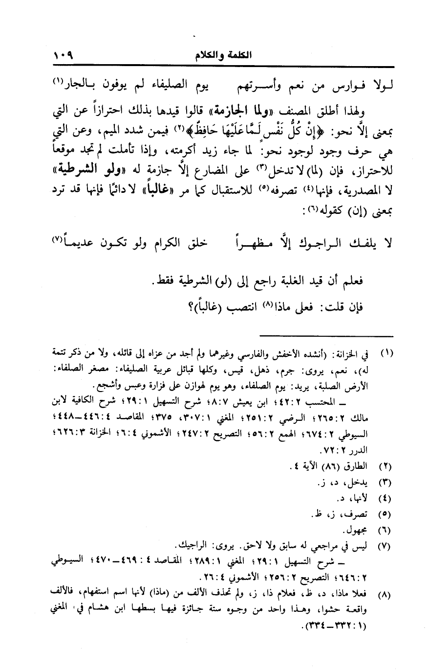 فعلم أن قيد الغلبة راجع إلى (لو) الشرطية فقط.