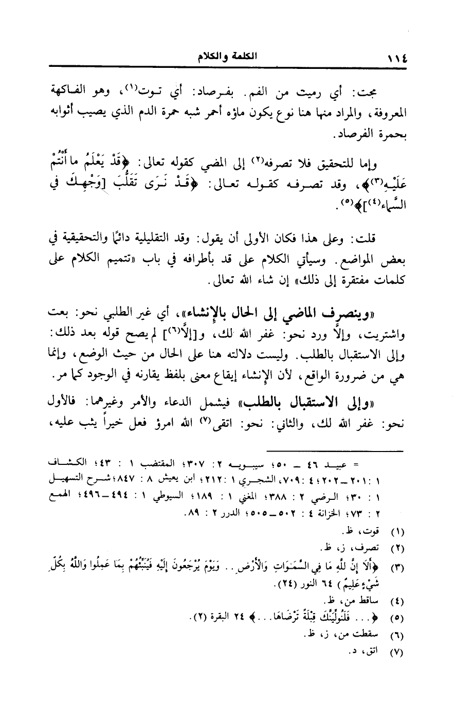 "وينصرف الماضي إلى الحال بالإنشاء"، أي غير الطلبي نحو: بعت واشتريت، وإلا ورد نحو: غفر الله لك، و [إلا] لم يصح قوله بعد ذلك: وإلى الاستقبال بالطلب.
