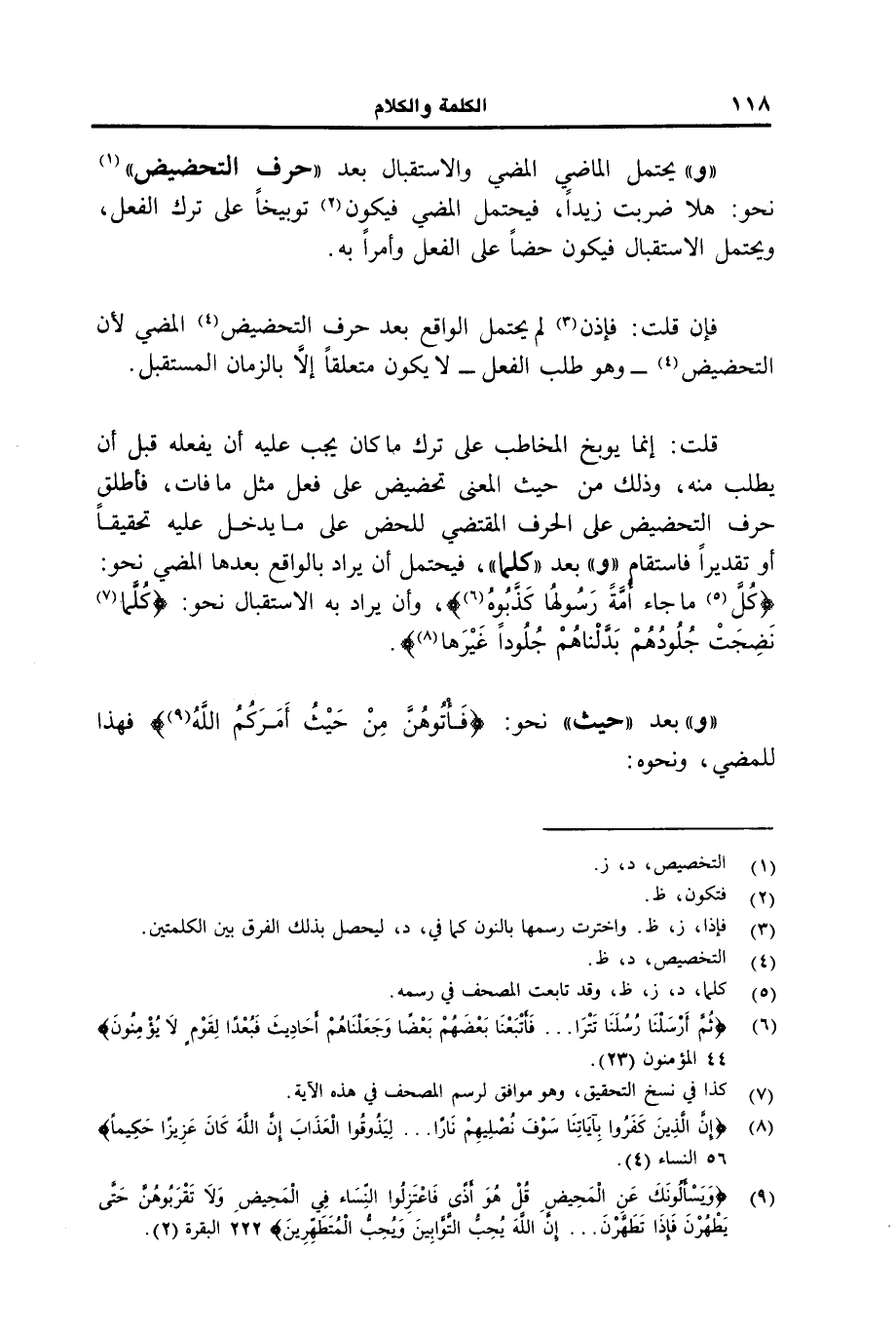 "و" يحتمل الماضي المضي والاستقبال بع "حرف التحضيض" نحو" هلا ضربت زيدا، فيحتمل المضي فيكن توبيخا على ترك الفعل، ويحتمل الاستقبال فيكون حضا على الفعل وأمرا به.