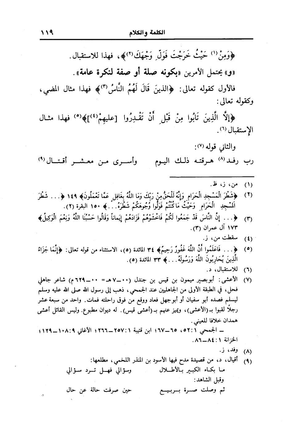 {إلا الذين تابوا من قبل ان تقدروا [عليهم]} فهذا مثال الإستقبال.