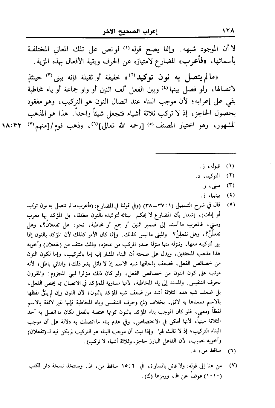 "ما لم يتصل به نون توكيد" خفيفة أو ثقيلة فإنه يبني حينئذ لاتصالها، ولو فصل بينها وبين الفعل ألف اثنين او واو جماعة أو ياء مخاطبة بقي على إعرابه؛ لأن موجب البناء عند اتصال النون هو التركيب، وهو مفقود بحصول الحاجز، إذ لا تركب ثلاثة أشياء فتجعل شيئا واحدا. هذا هو المذهب المشهور، وهو اختيار المصنف [رحمه الله تعالى]، وذهب قوم / [منهم