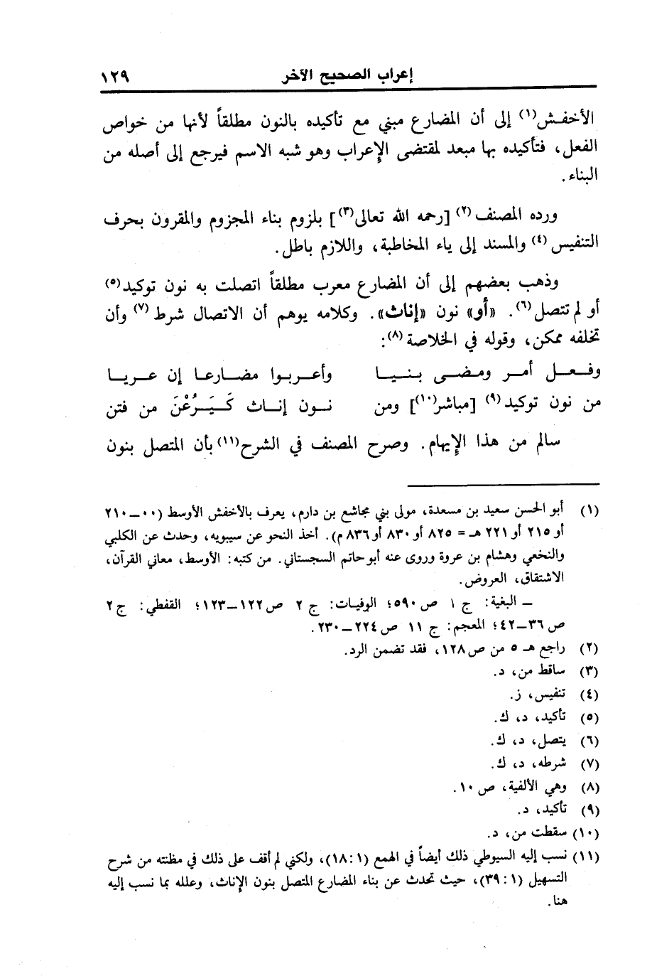 الأخفش إلى أن المضارع مبني مع تأكيده بالنون مطلقا لأنها من خواص الفعل، فتأكيده بها مبعد لمقتضى الإعراب وهو شبه الاسم فيرجع إلى أصله من البناء.