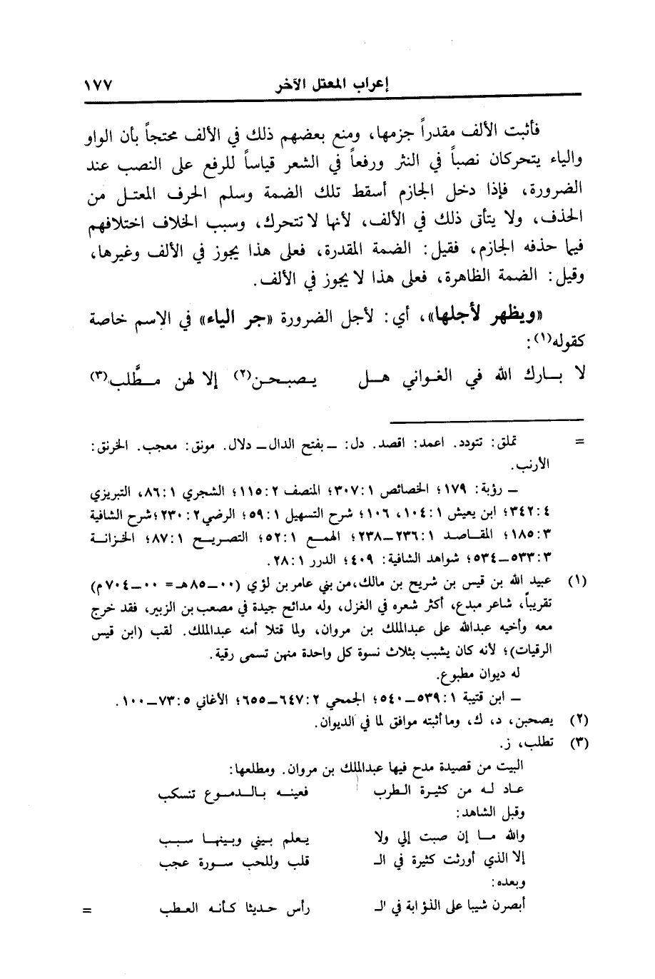 "ويظهر لأجلها"، أي: لأجل الضرورة "جر الياء" في الاسم خاصة كقوله: