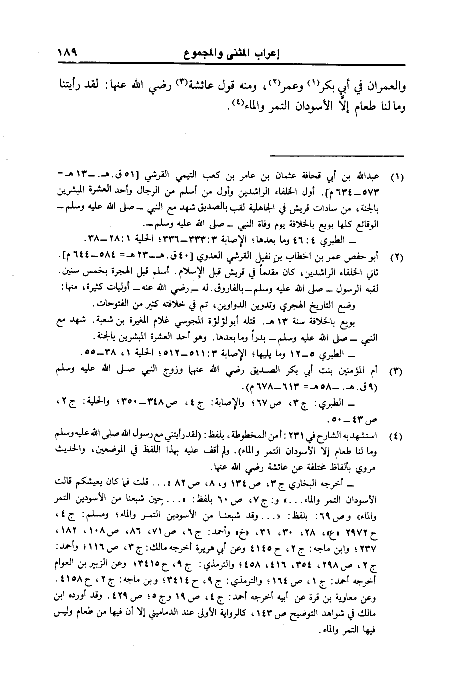 والعمران في أبي بكر وعمر، ومنه قول عائشة رضي الله عنها: لقد رأينا وما لنا طعام إلا الأسودان التمر والماء.