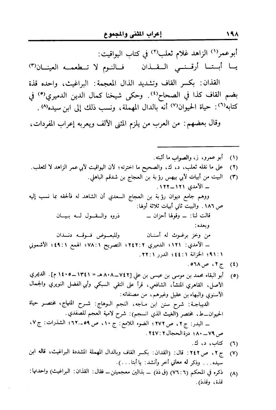 وقال بعضهم: من العرب من يلزم المثنى الألف ويعربه إعراب المفردات،