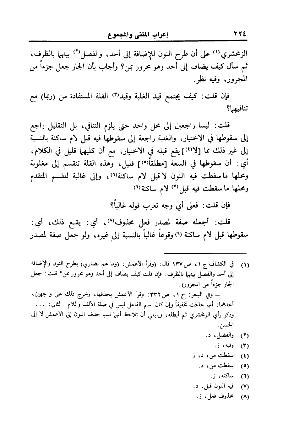 الزمخشري على أن طرح النون للإضافة إلى أحد والفصل بينهما بالظرف، ثم سال كيف يضاف إلى أحد وهو مجرور بمن؟
